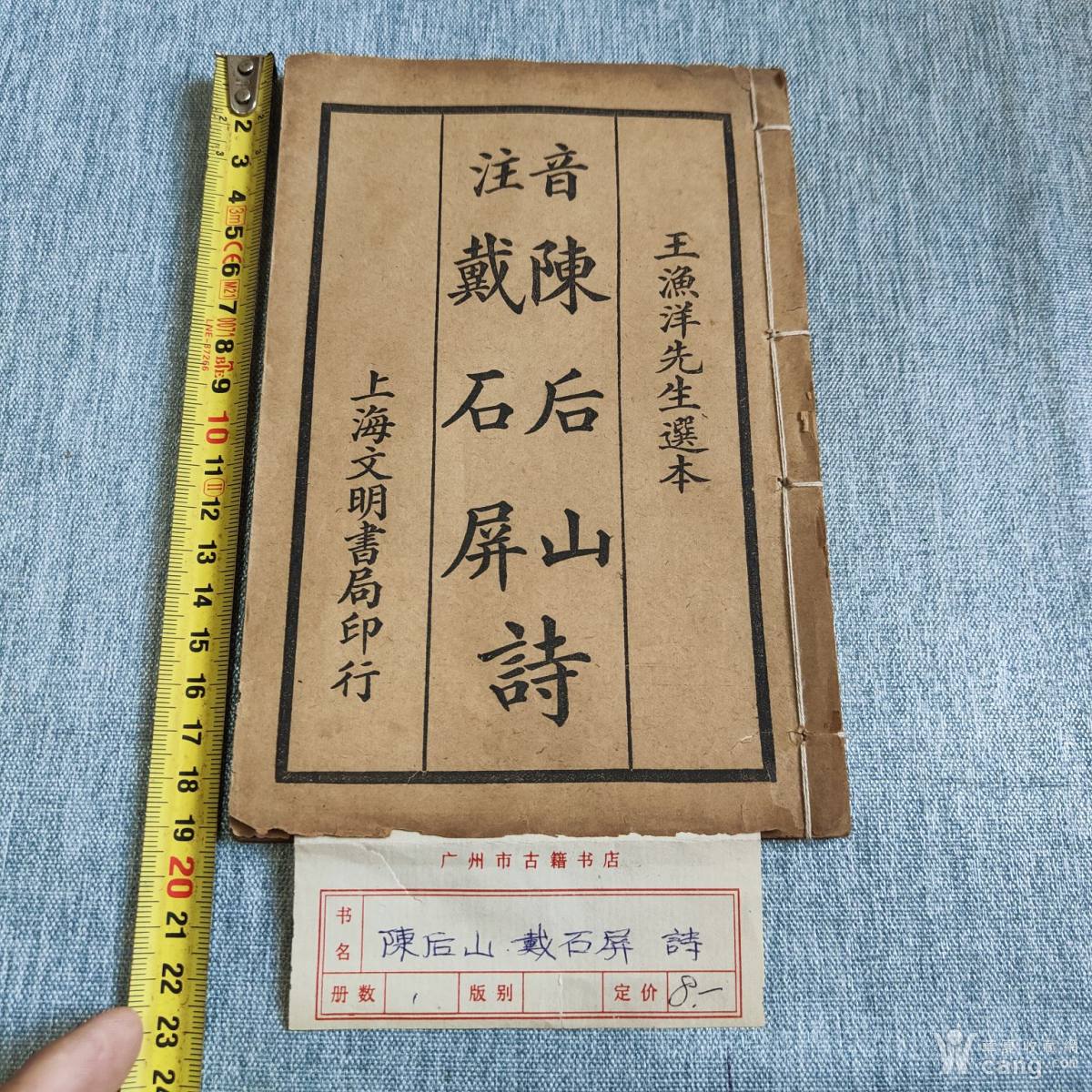 地摊>古籍碑帖>古籍>音注陈后山,戴石屏诗,好品,广州古籍书店鉴定火漆戳> 收藏分享 举报音注陈后山,戴石屏诗,好品,广州古籍书店鉴定火漆戳编号:SD177318 更新时间:2025.05.01包邮¥0一口价 浏览11送去鉴定 运费:包邮立即购买不支持七天无理由退货安全支付消费保障店主推荐非卖品/勿拍包邮¥10000000 35包老,特价包邮¥0 20和田黄玉南瓜雕件包邮¥0 11手绘胭脂壶,全品完整包邮¥0 31和田黄玉灵芝纹牌、包邮¥0 12和田黄玉龙纹斧包邮¥0 11永乐。。。。包邮¥0 24顺治五彩花菇包邮¥0 27和田黄玉诗文环包邮¥0 6老坑玉壁 望子成龙包邮¥0 13藏品描述藏品展示服务保障 手机购买 安全提示为保障您的利益,请在平台下完成交易。切勿私自微信、支付宝、银行转账,谨防诈骗!平台外产生的交易纠纷,将不受平台资金保护。藏品描述音注陈后山,戴石屏诗,好品,广州古籍书店鉴定火漆戳藏品展示服务保障消费者保障服务该卖家已缴纳消保保证金,您可放心购买。支付方式支付宝安全支付安全支付余额支付网银支付