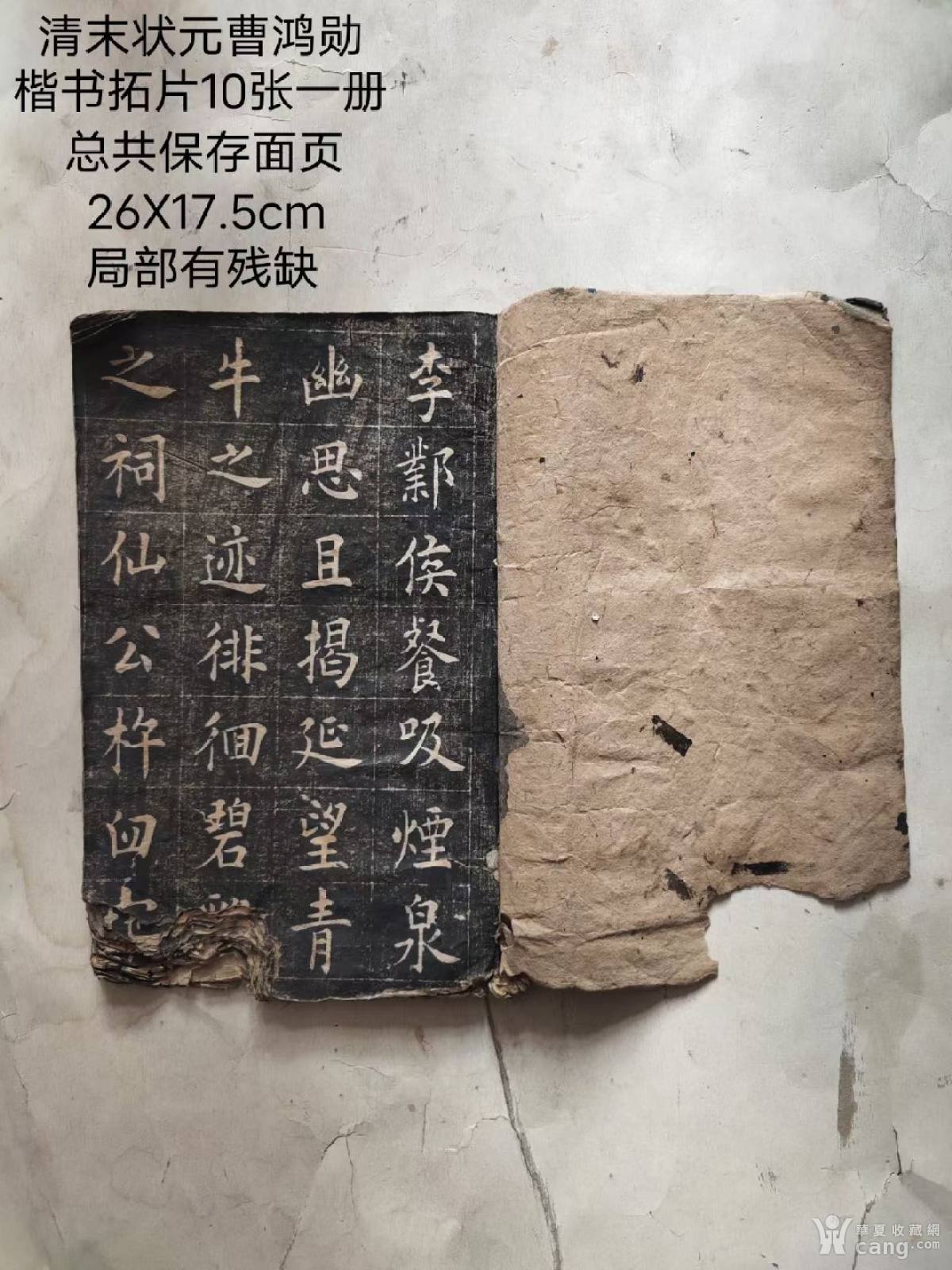 地摊>古籍碑帖>碑帖>清末状元曹鸿勋 拓片10张20面页> 收藏分享 举报清末状元曹鸿勋 拓片10张20面页编号:SD185029 更新时间:2025.04.29包邮¥990一口价 浏览8送去鉴定 运费:包邮立即购买不支持七天无理由退货安全支付消费保障店主推荐非卖品/勿拍包邮¥10000000 35包老,特价包邮¥0 20和田黄玉南瓜雕件包邮¥0 11手绘胭脂壶,全品完整包邮¥0 31和田黄玉灵芝纹牌、包邮¥0 12和田黄玉龙纹斧包邮¥0 11永乐。。。。包邮¥0 24顺治五彩花菇包邮¥0 27和田黄玉诗文环包邮¥0 6老坑玉壁 望子成龙包邮¥0 13藏品描述藏品展示服务保障 手机购买 安全提示为保障您的利益,请在平台下完成交易。切勿私自微信、支付宝、银行转账,谨防诈骗!平台外产生的交易纠纷,将不受平台资金保护。藏品描述清末状元曹鸿勋拓片10张20面页藏品展示服务保障消费者保障服务该卖家已缴纳消保保证金,您可放心购买。支付方式支付宝安全支付安全支付余额支付网银支付