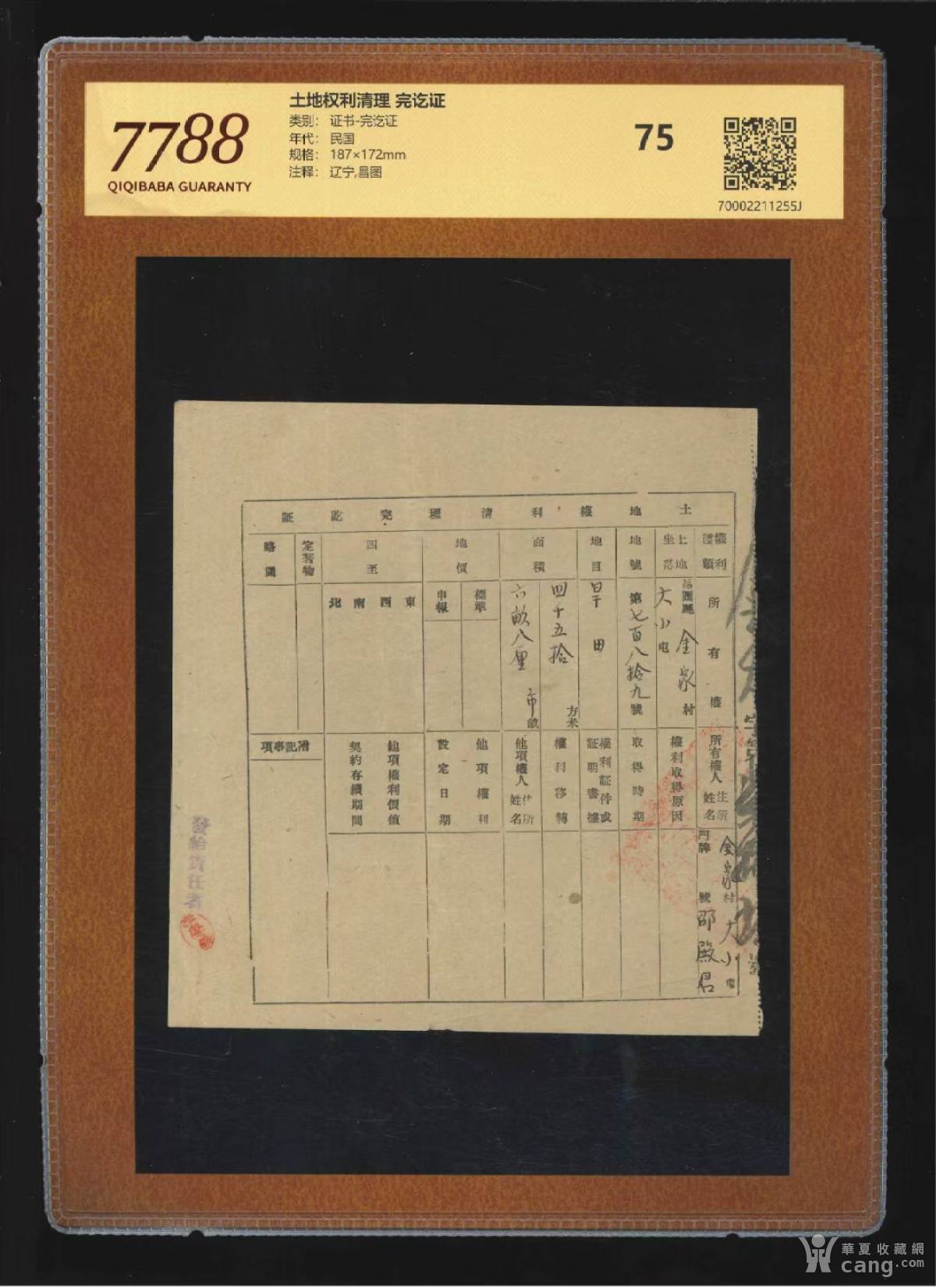 地摊>钱币>证章/票证/邮币卡>民国昌图县金家村土地权力清理完讫证(第789号)17*18.> 收藏分享 举报民国昌图县金家村土地权力清理完讫证(第789号)17*18.编号:SD195313 更新时间:2025.04.24包邮¥0一口价 浏览16送去鉴定 运费:包邮立即购买不支持七天无理由退货安全支付消费保障店主推荐非卖品/勿拍包邮¥10000000 36包老,特价包邮¥0 23和田黄玉南瓜雕件包邮¥0 17手绘胭脂壶,全品完整包邮¥0 34和田黄玉灵芝纹牌、包邮¥0 14和田黄玉龙纹斧包邮¥0 16永乐。。。。包邮¥0 31顺治五彩花菇包邮¥0 28和田黄玉诗文环包邮¥0 13老坑玉壁 望子成龙包邮¥0 20藏品描述藏品展示服务保障 手机购买 安全提示为保障您的利益,请在平台下完成交易。切勿私自微信、支付宝、银行转账,谨防诈骗!平台外产生的交易纠纷,将不受平台资金保护。藏品描述民国昌图县金家村土地权力清理完讫证(第789号)17*18.藏品展示服务保障消费者保障服务该卖家已缴纳消保保证金,您可放心购买。支付方式支付宝安全支付安全支付余额支付网银支付