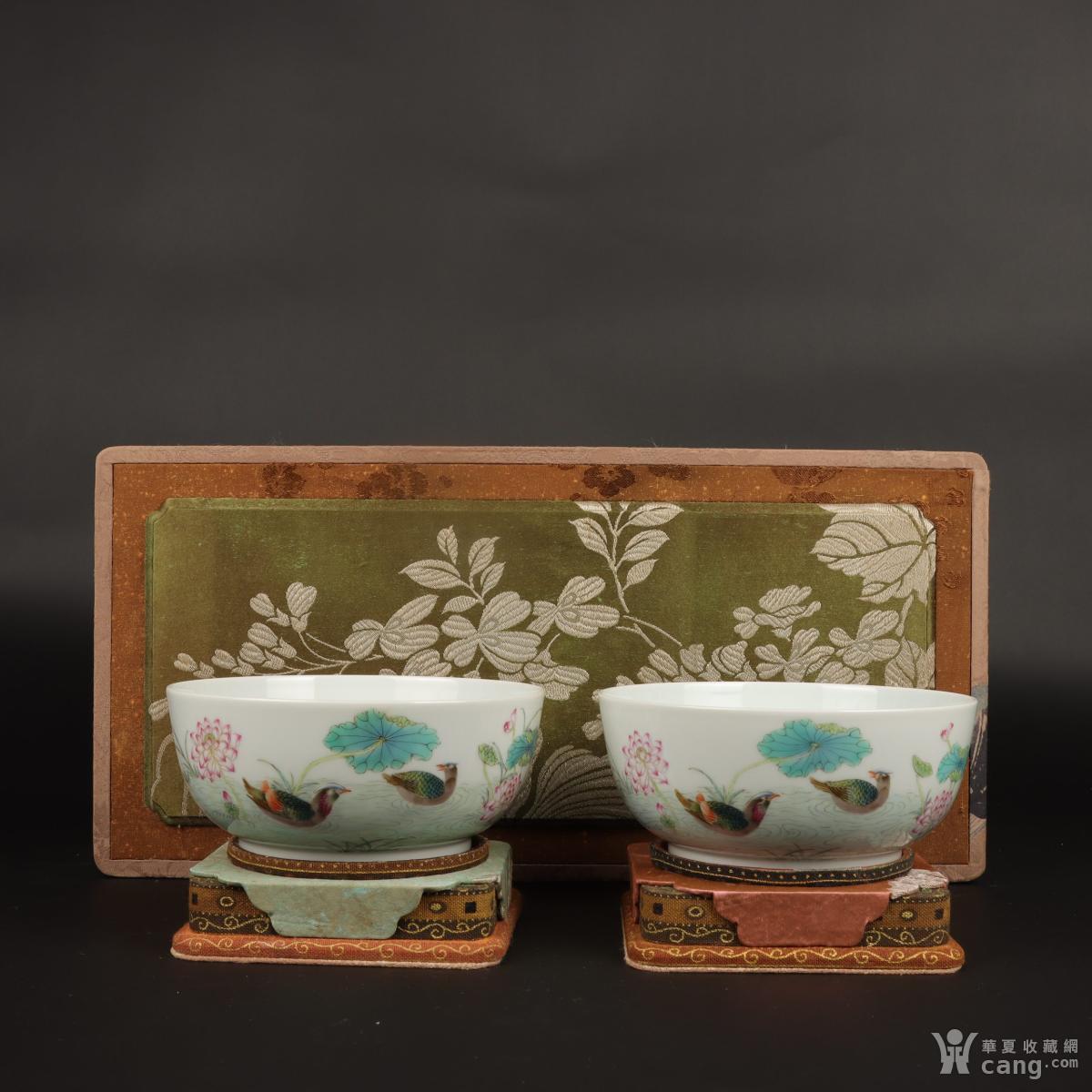 清雍正粉彩鸳鸯荷叶题诗碗一对