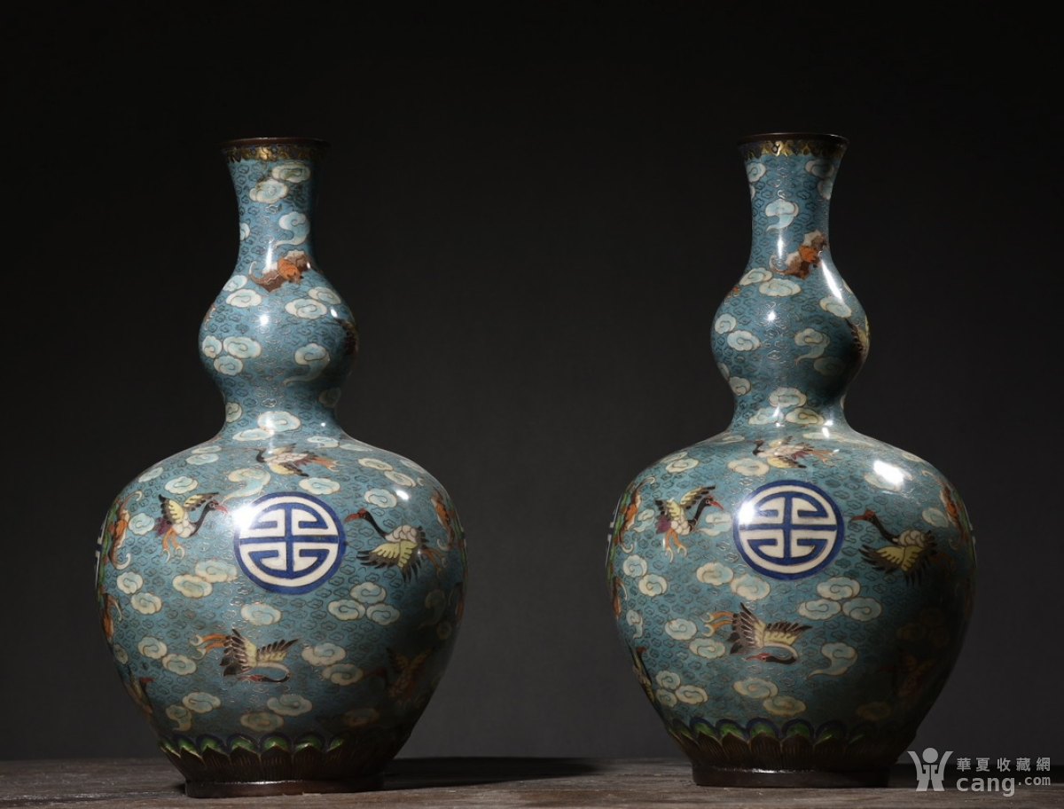 旧藏 景泰蓝五福捧寿云鹤纹葫芦瓶一对