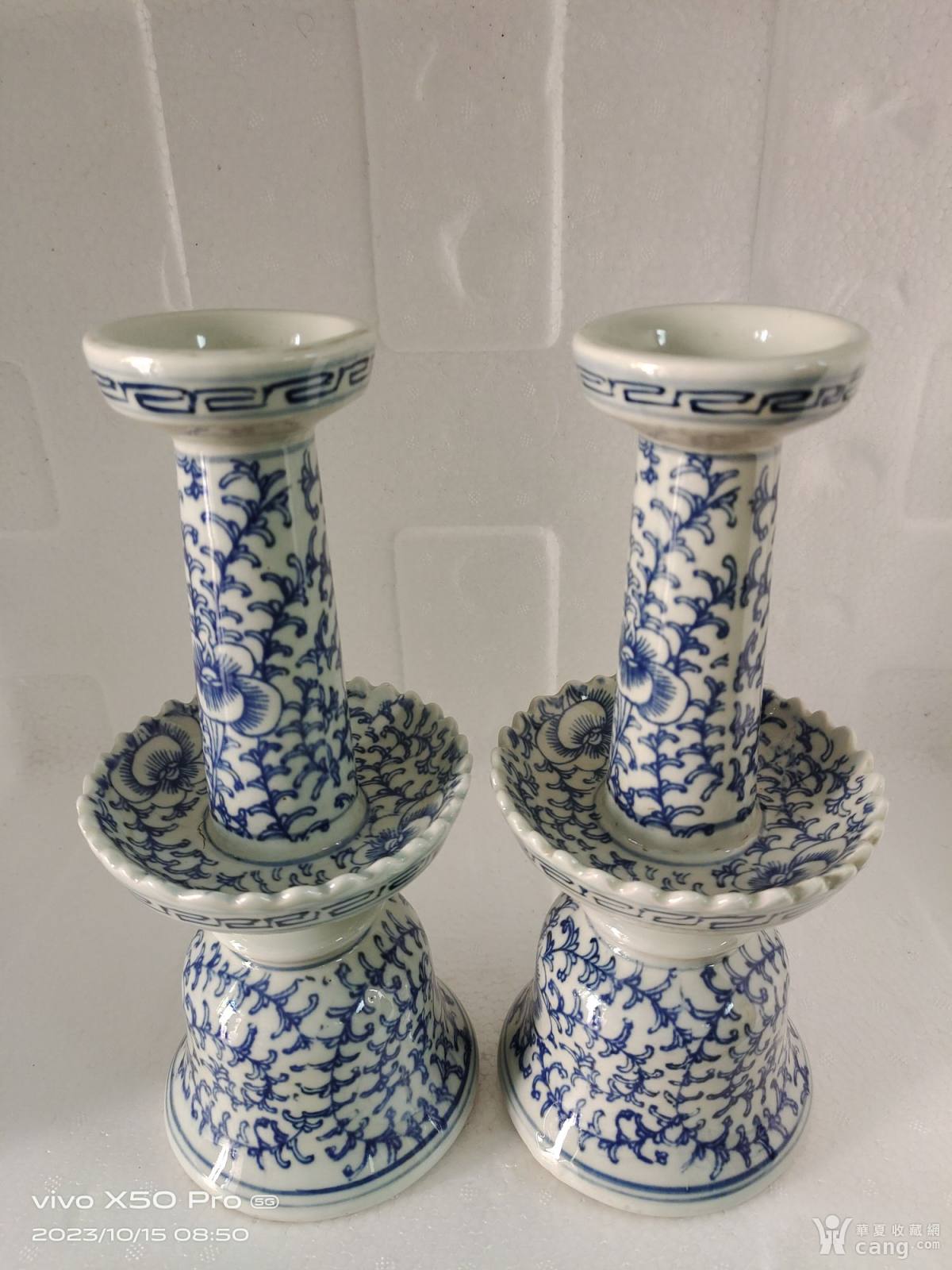 解放文革青花油灯一对