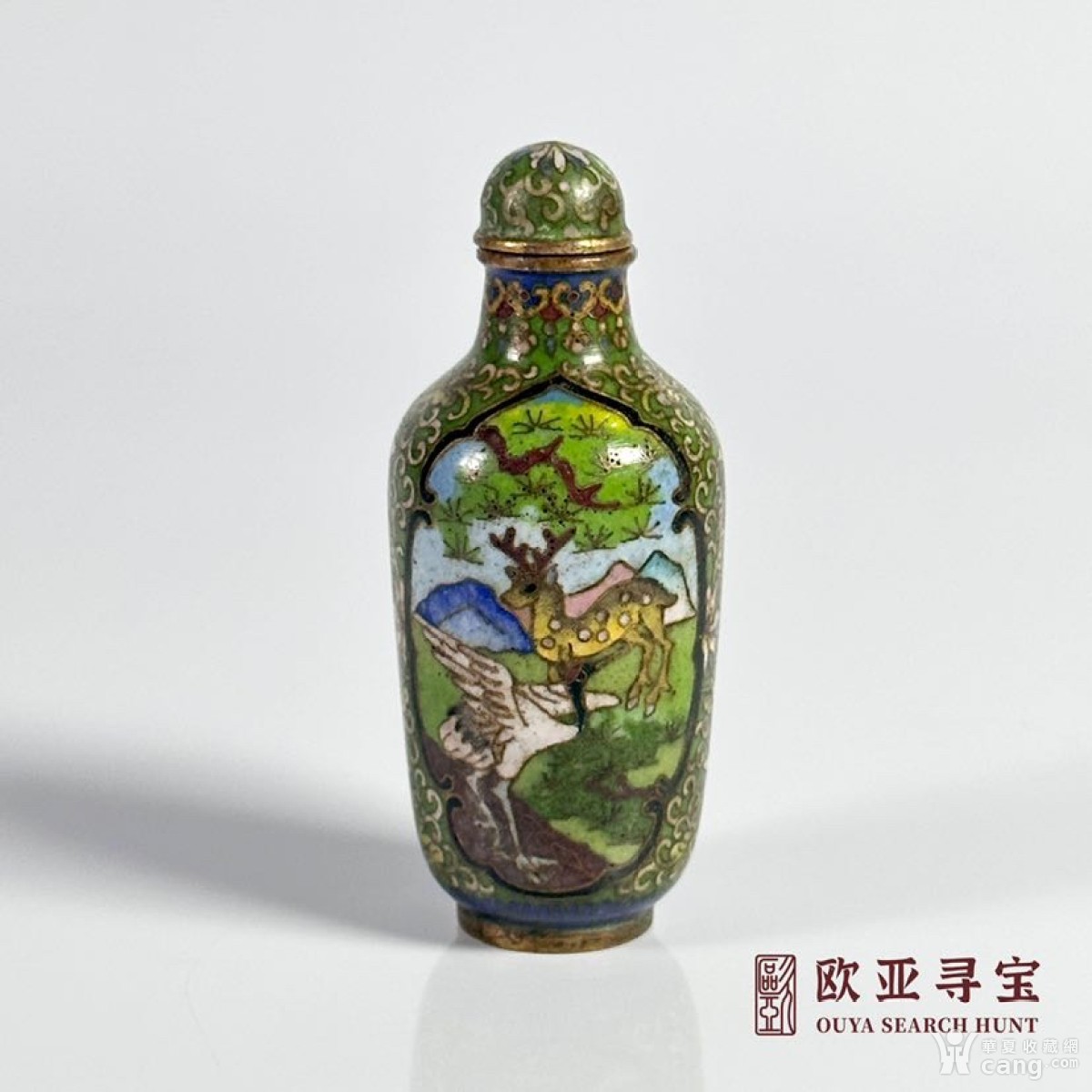 欧洲回流民国时期铜胎掐丝珐琅鹤鹿同春鼻烟壶
