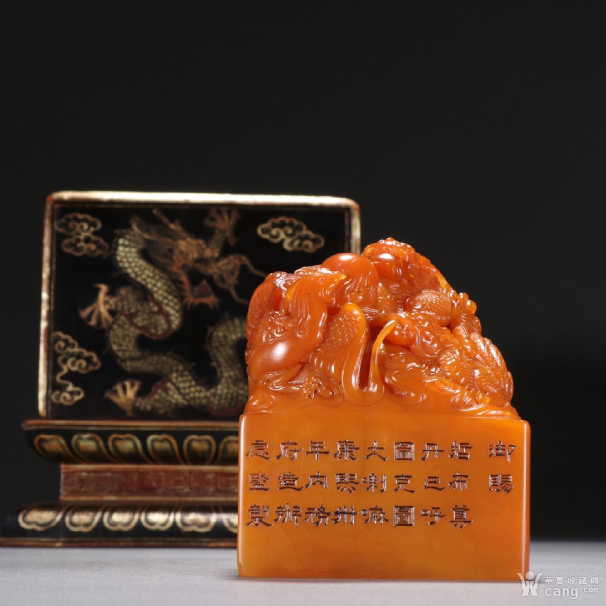 清 田黄石龙纹神兽钮印章