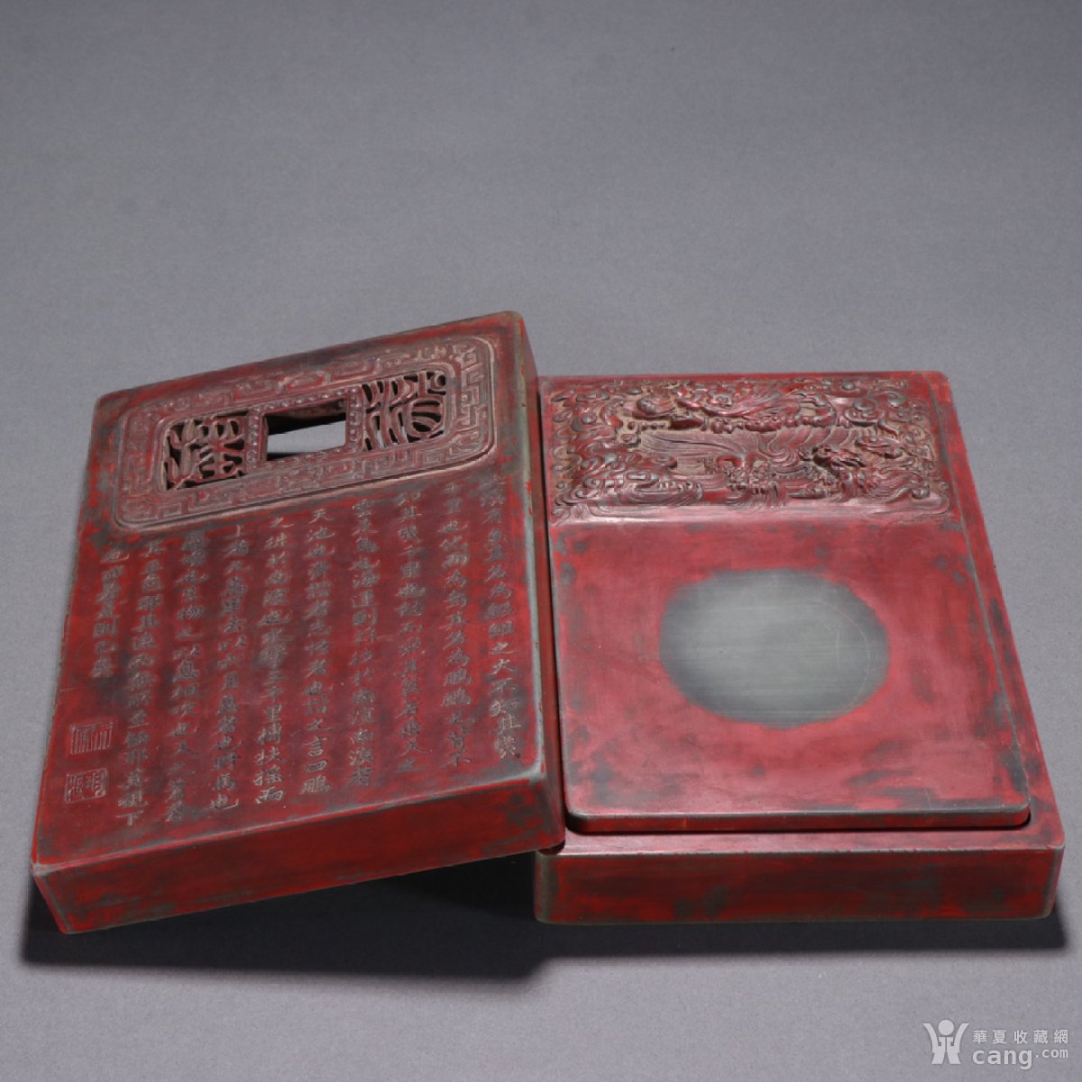 旧藏 松花石鱼化龙文房套砚