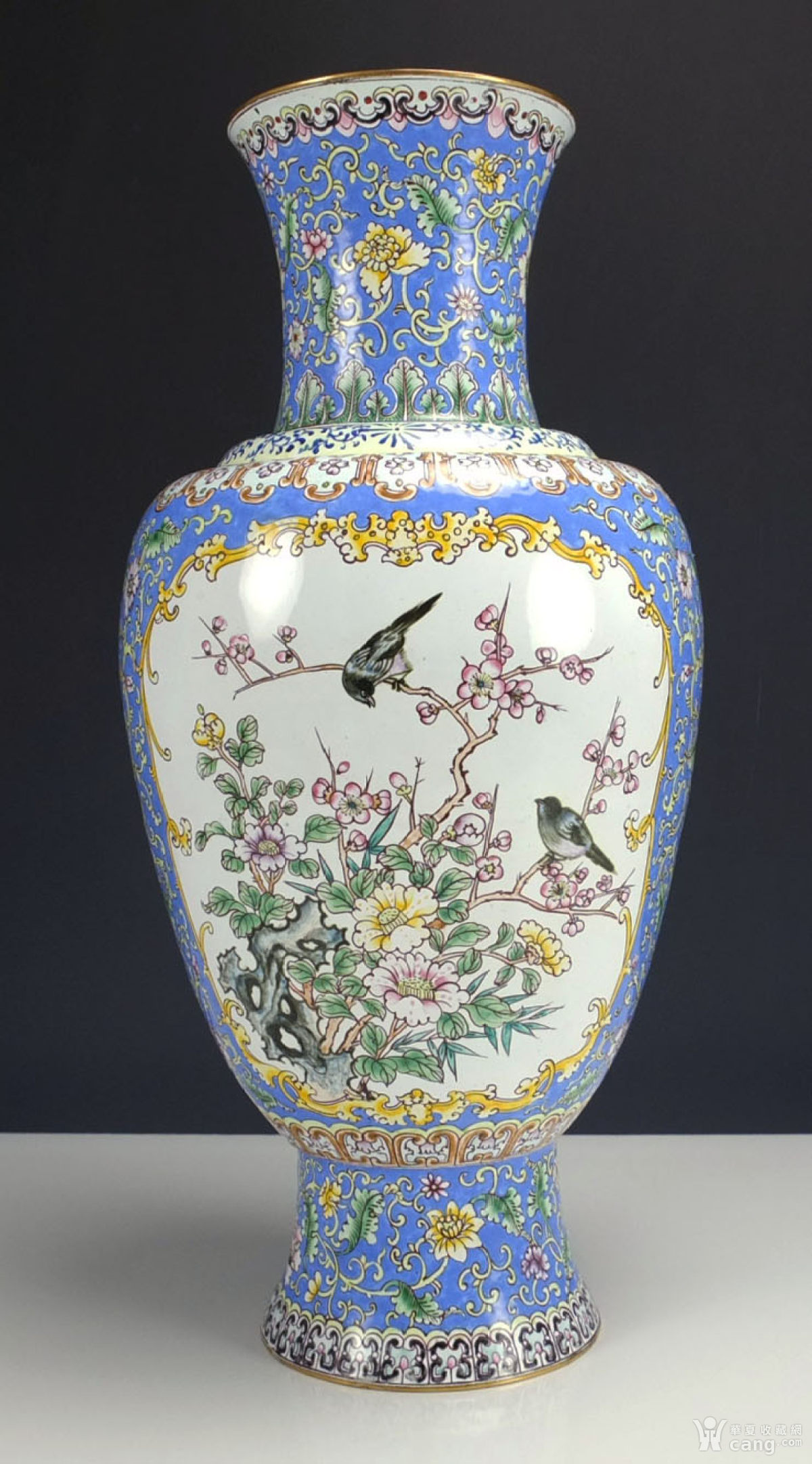 海外回流—硕大—铜胎画珐琅彩—花鸟纹珐琅彩 橄榄瓶