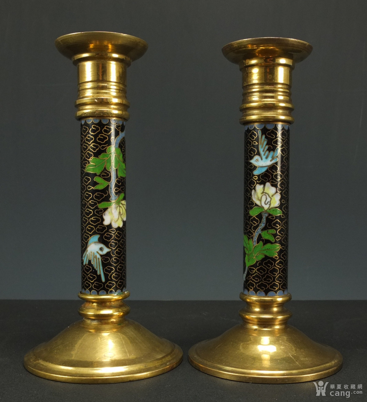 海外回流—铜胎掐丝珐琅 花绘纹烛台 一对