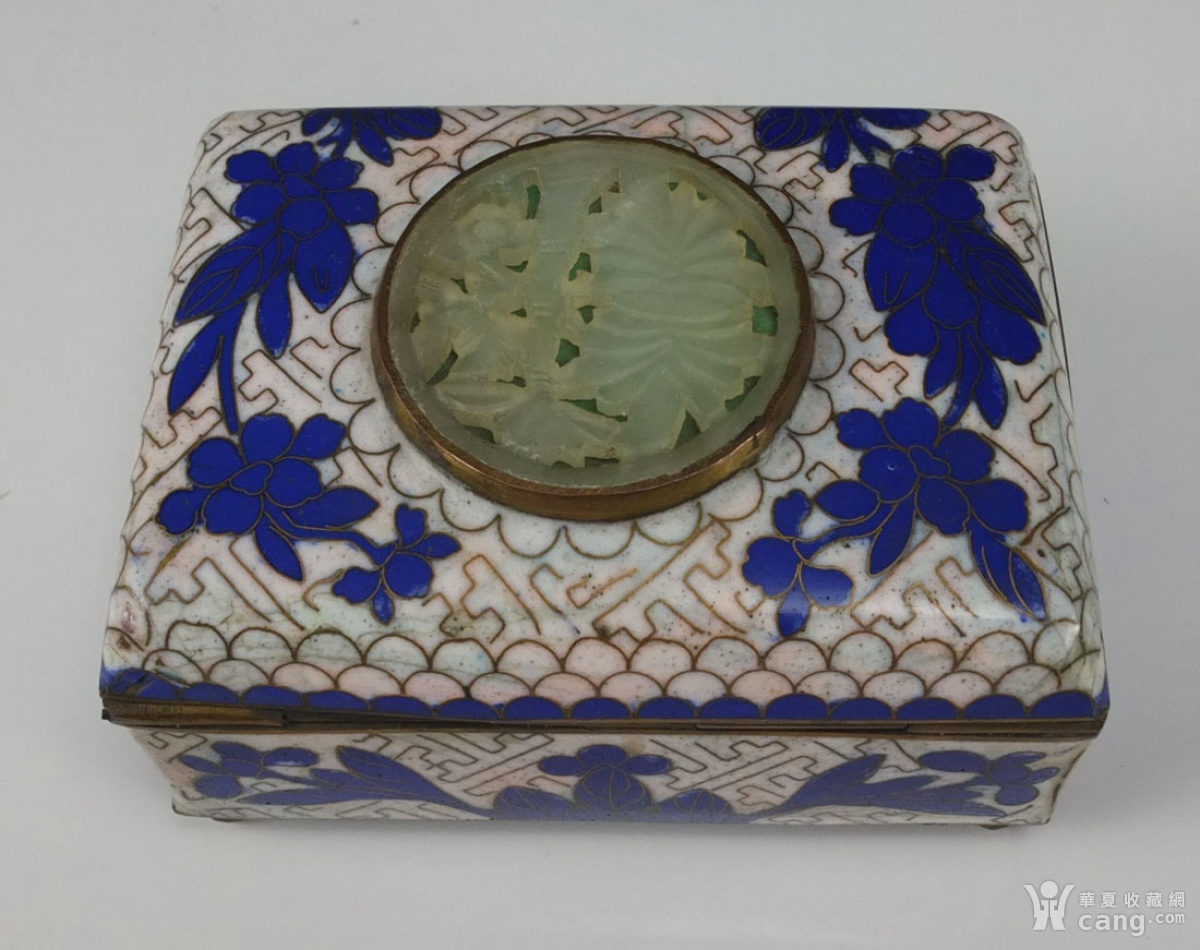 清代 铜胎掐丝珐琅镶嵌天然老玉—叶茶盒