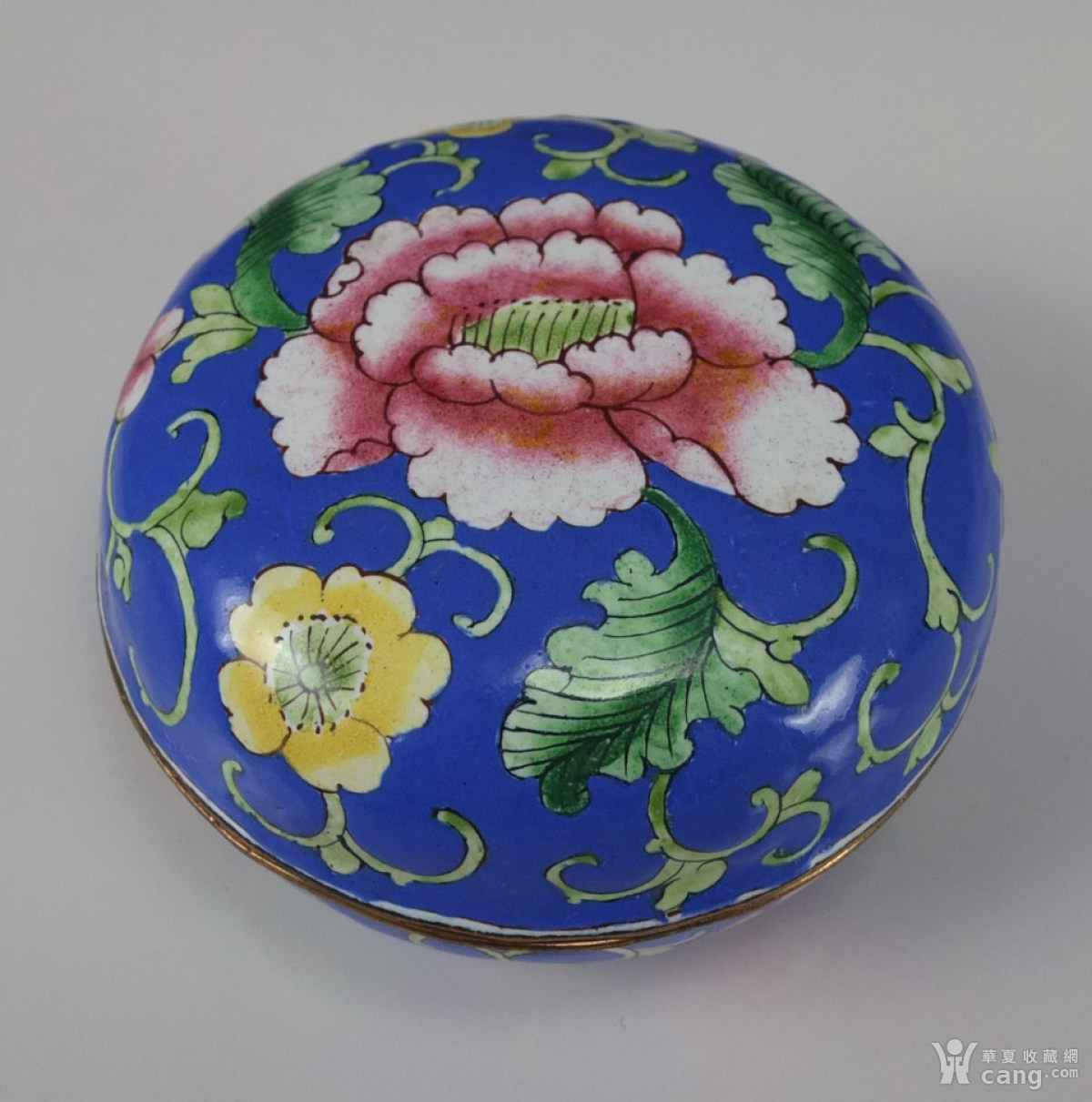 国外回流铜胎画珐琅《海棠牡丹》精品——园盒