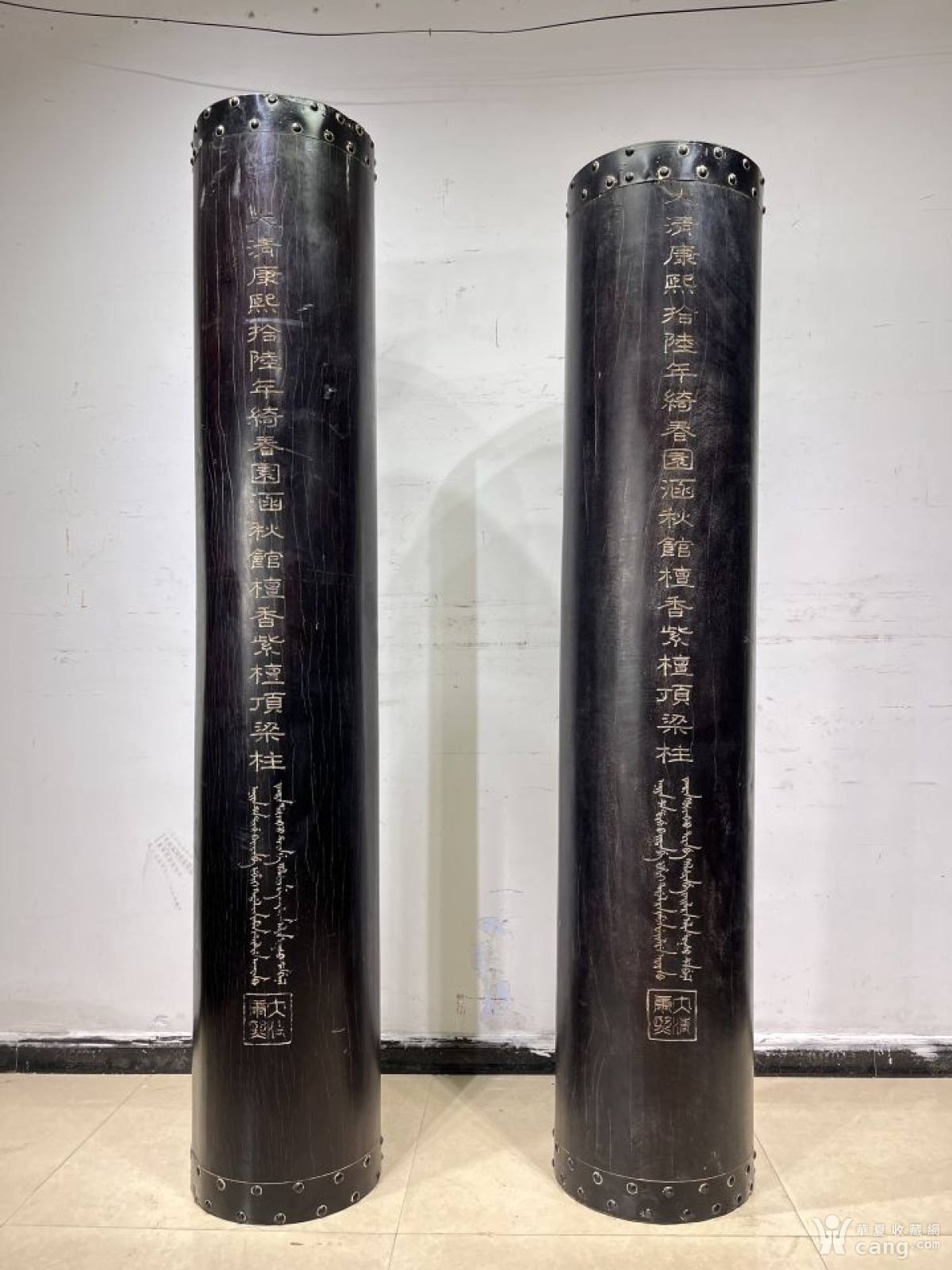 旧藏清代紫檀顶梁柱手工雕刻描金字体