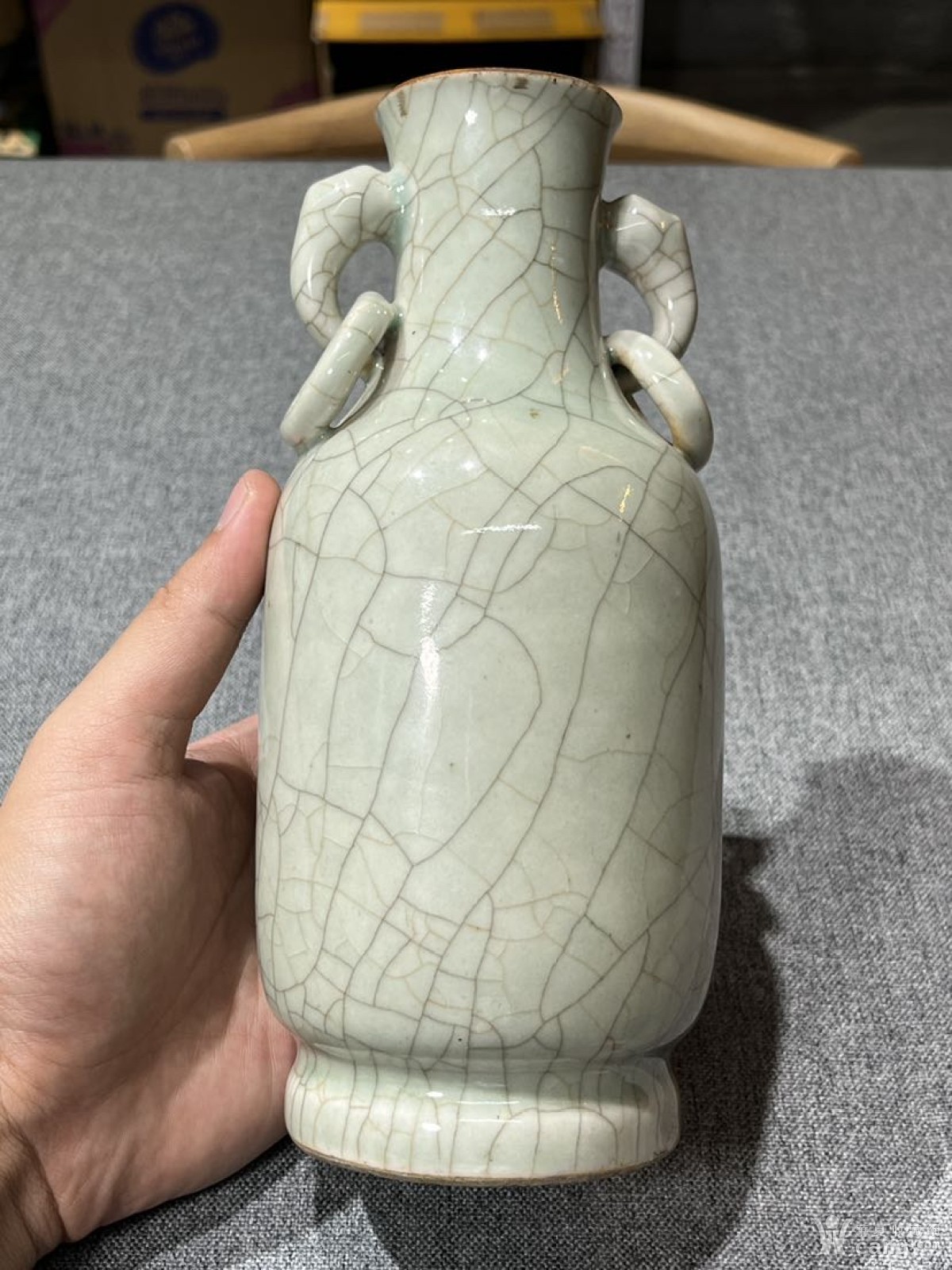 清代乾隆时期绿哥釉双耳瓶