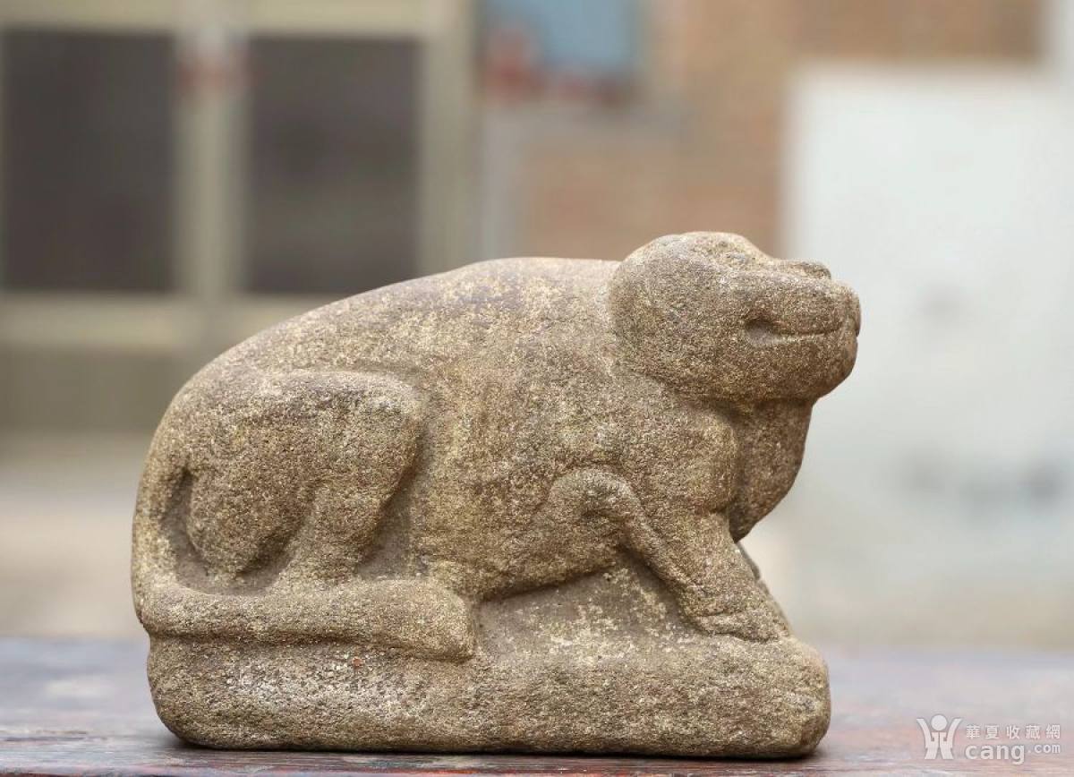 明代案头狮,沙石置,案头狮昂头挺胸做俯卧式,体型肥硕,形态憨
