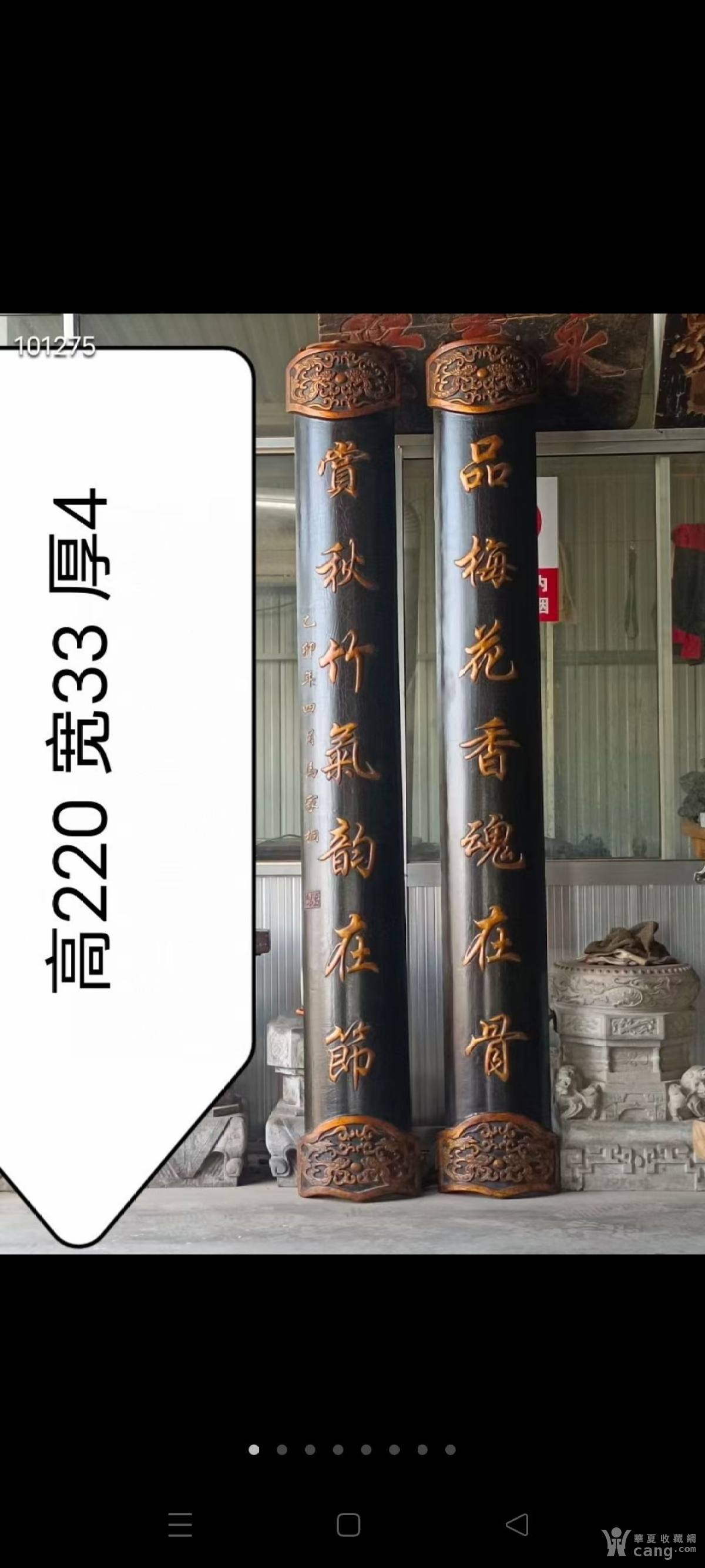 民国 楠木 大尺寸 抱柱联一对 阳雕字 黑大漆鎏金 全品包老