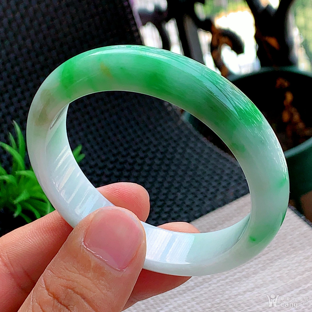 缅甸天然翡翠A货冰润飘绿宽边手镯59圈口