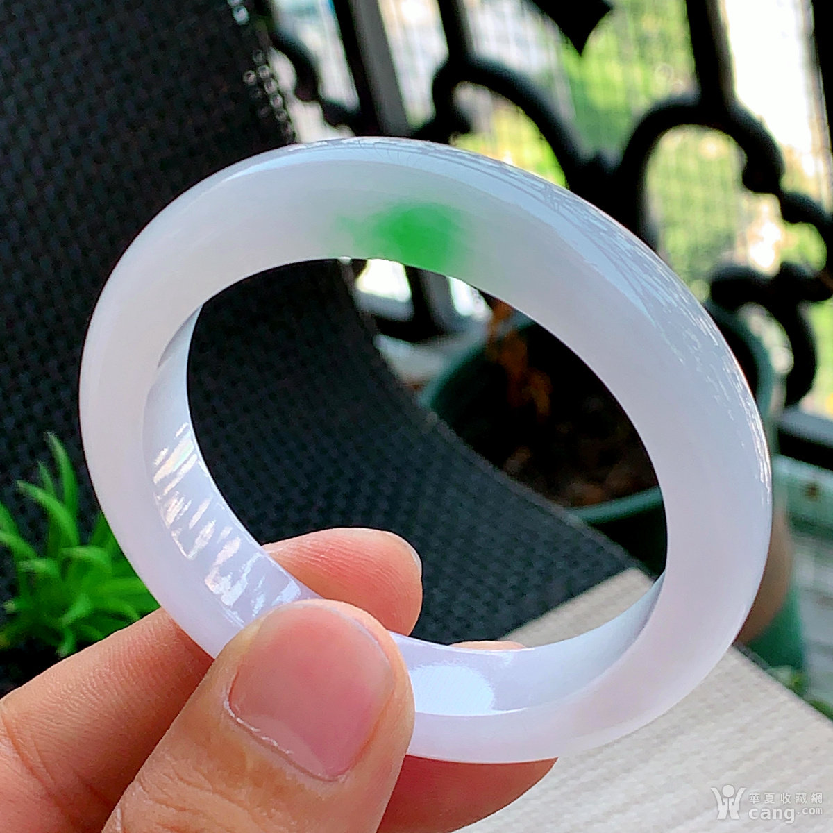 缅甸天然翡翠A货冰透水润飘绿宽边手镯53.5圈口