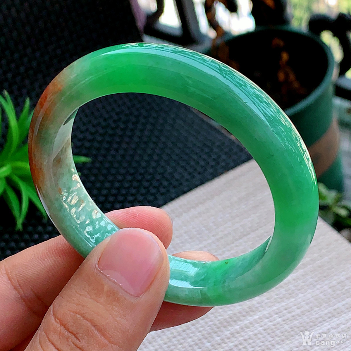 缅甸天然翡翠A货冰透水润红加绿双彩个性宽边手镯58圈口