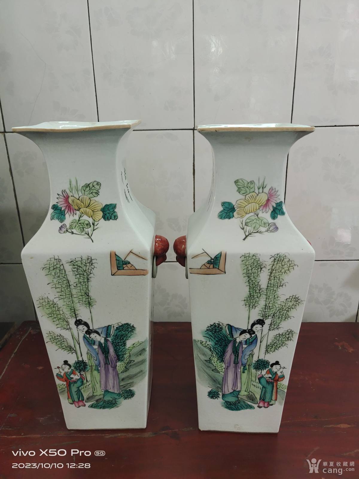 解放文革四方人物花瓶一对