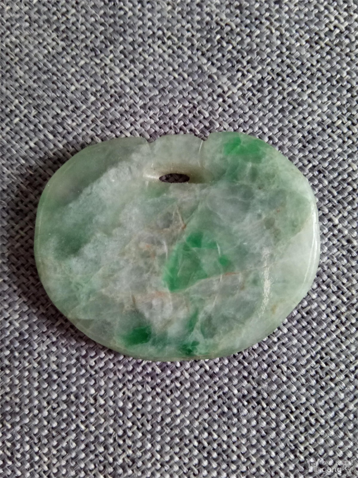 清代老坑冰种带阳绿长命富贵花卉如意翡翠锁佩