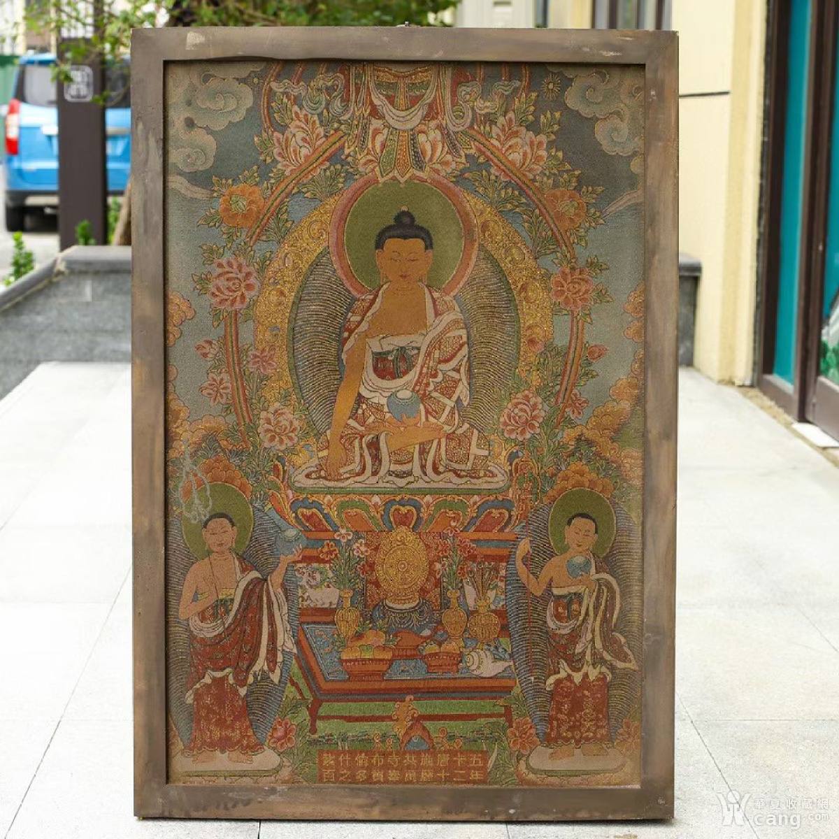 【藏传唐卡】旧藏木框织锦释迦牟尼佛像唐卡,高96厘米高66厘