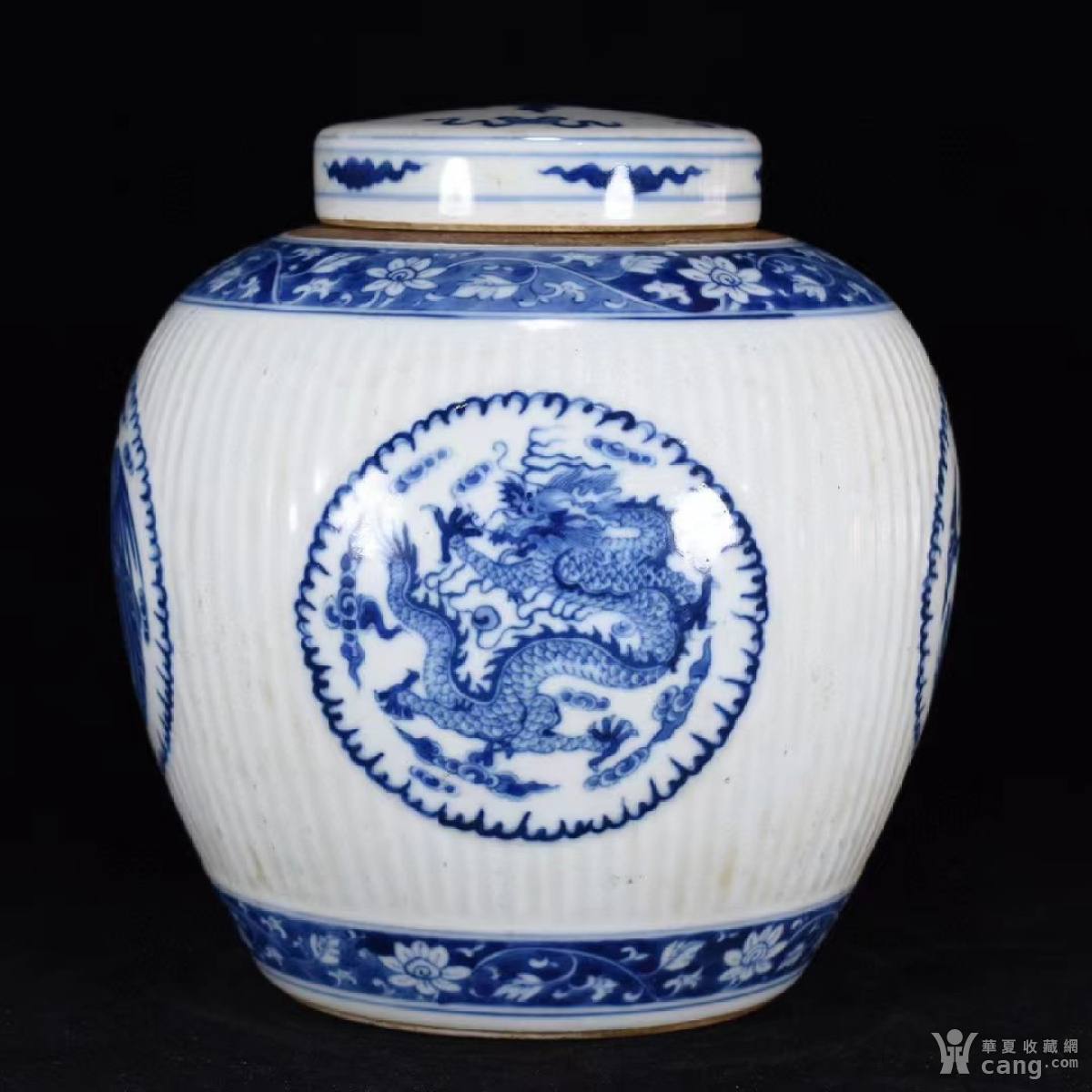 康熙年制双圈款 青花缠枝莲团龙团凤刮棱盖罐 高24厘米 直