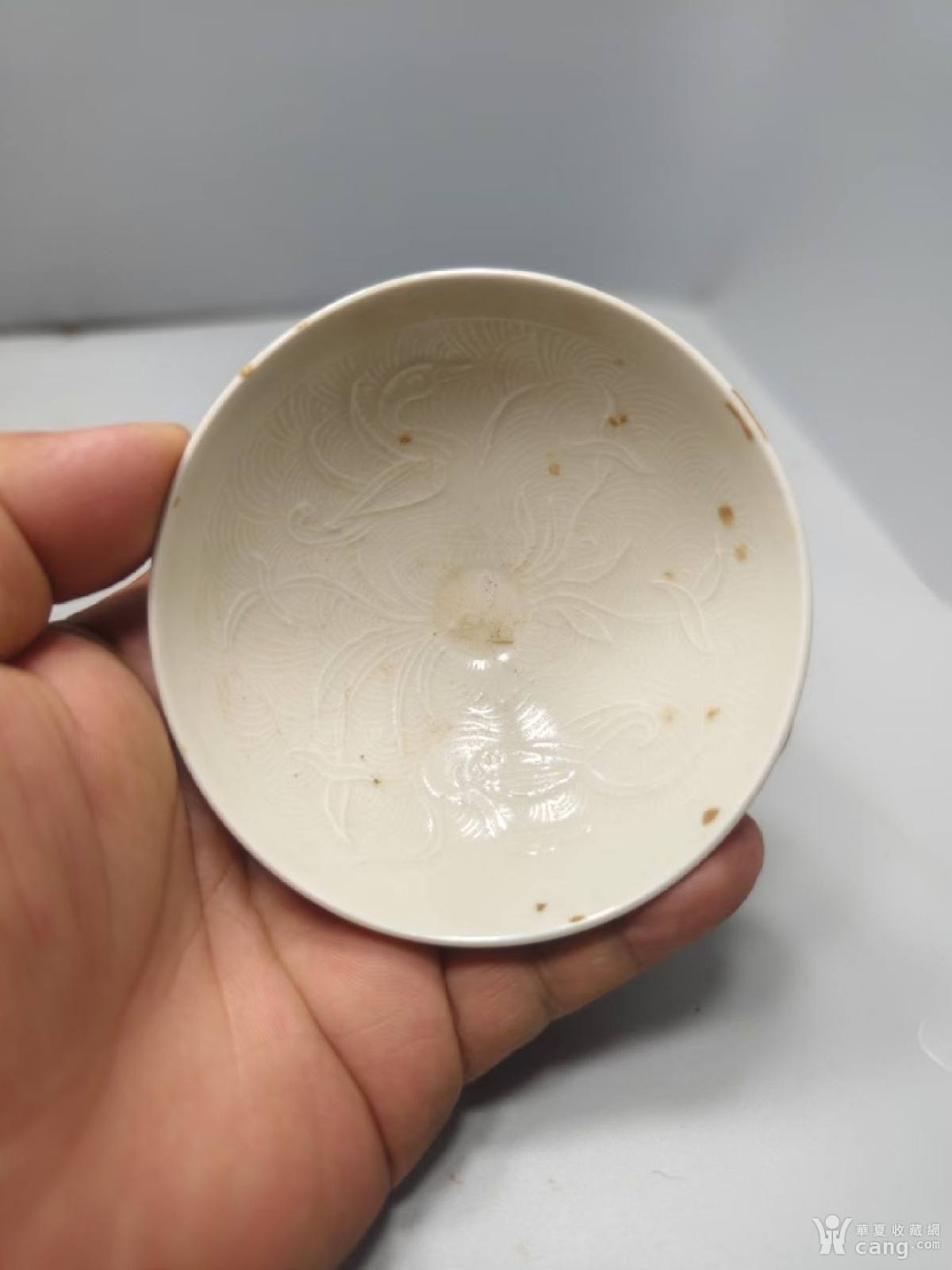 宋代定窑白釉印花茶盏完整漏口轻微失园窑址货包老保真