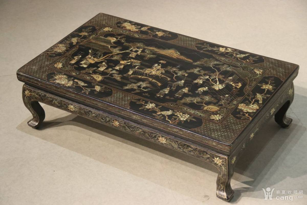 文人空间~三弯腿 炕桌 整体大漆描金花卉 人物、栩栩如生
