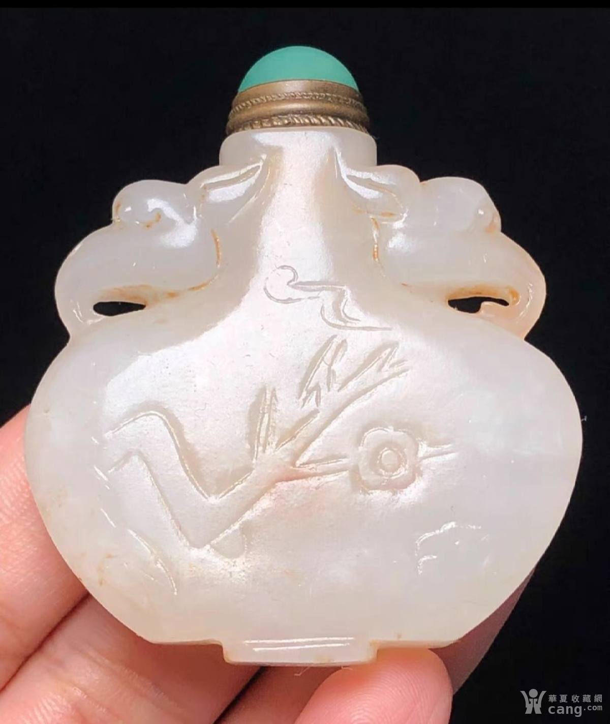 旧藏! 老玉,老和田玉双兽首鼻烟壶。