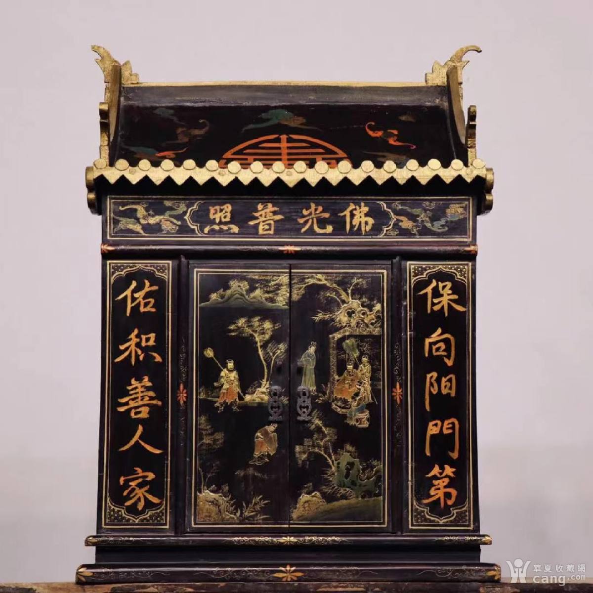 大漆描金佛龛 造型独特 器形精美 左右带对联 通体大漆描金彩