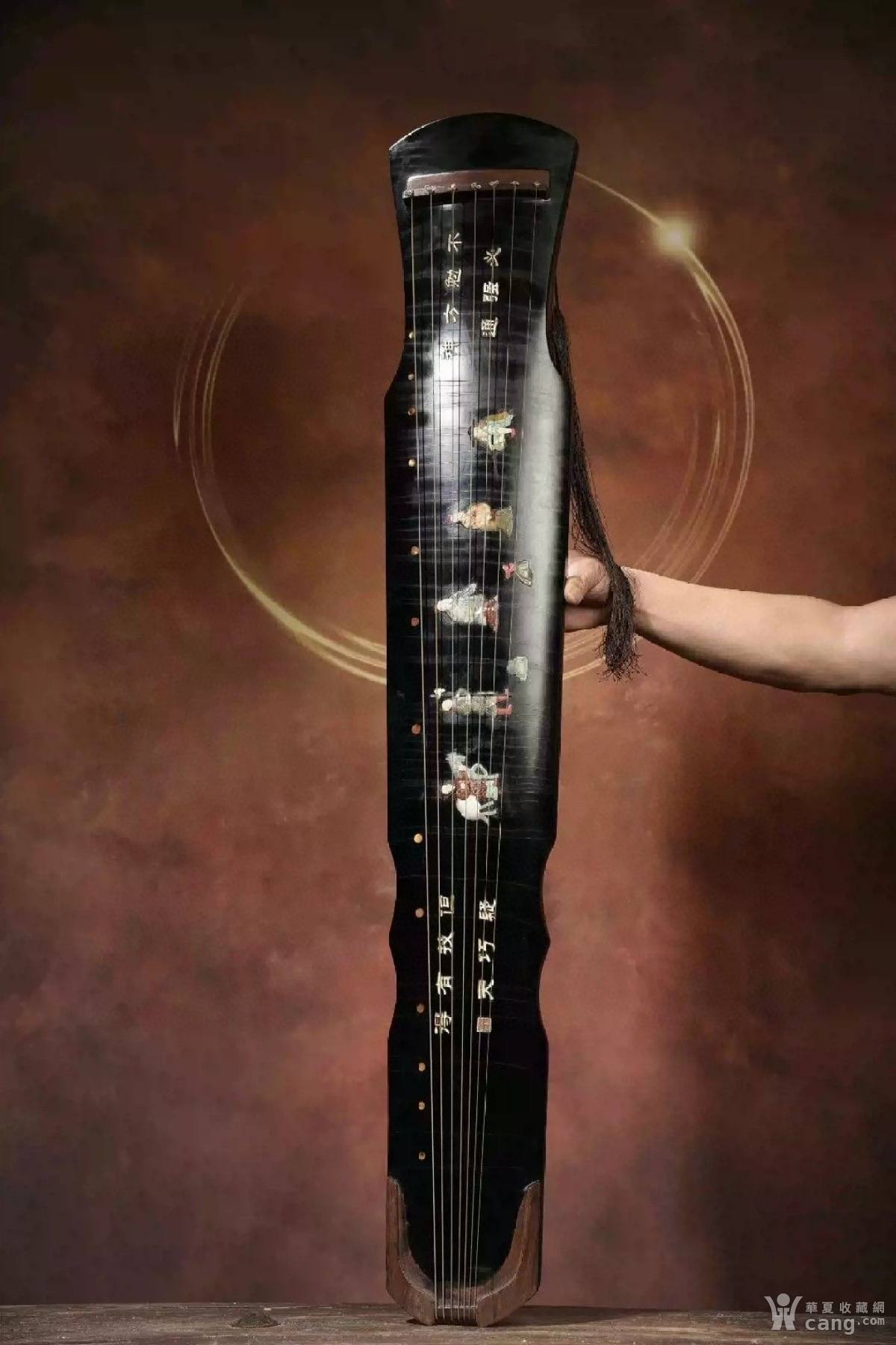 黑漆镶玉嵌贝雕木七弦琴