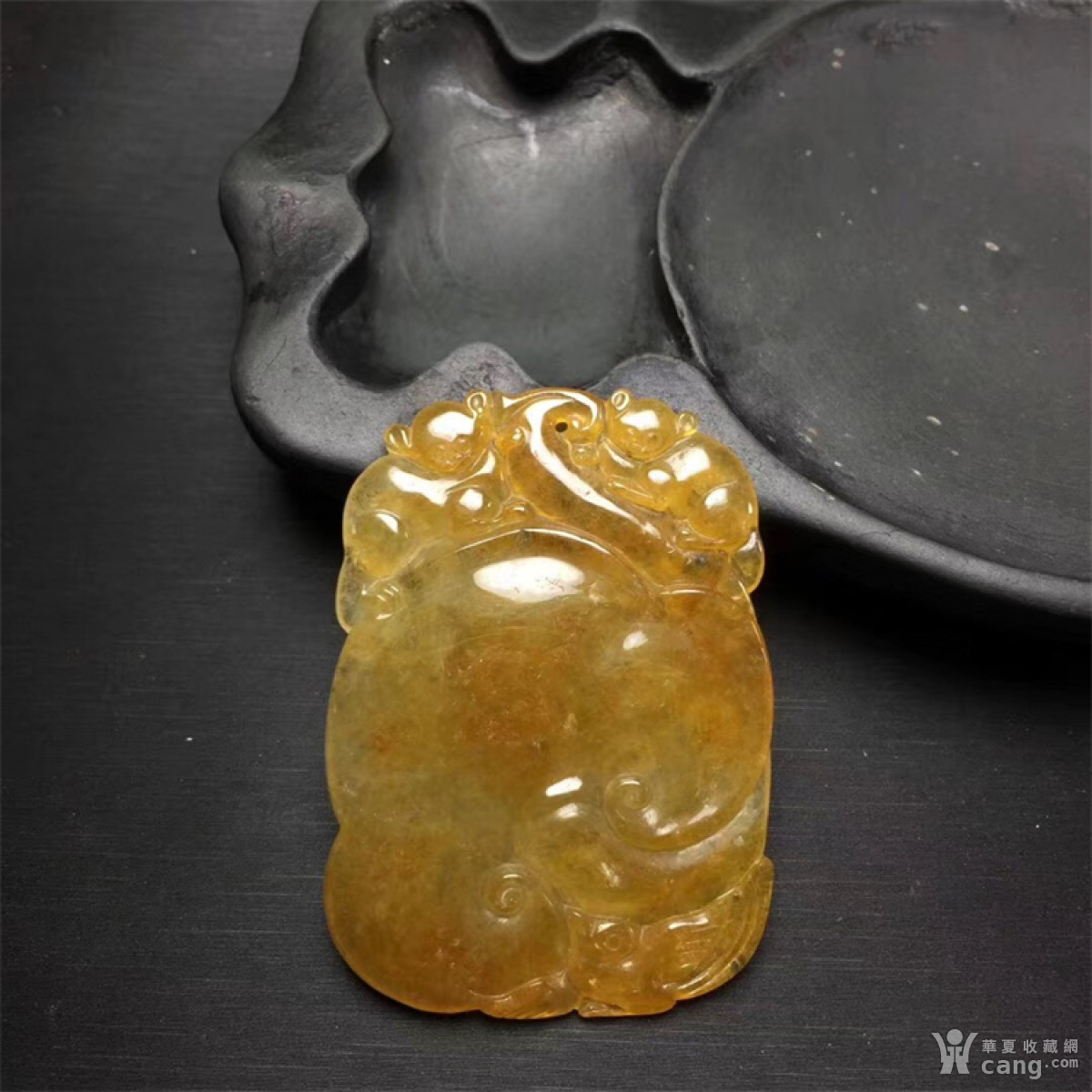 a211创汇期冰种天然黄翡如意双欢吊坠