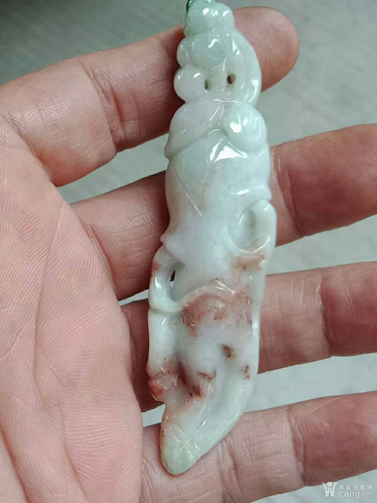 缅甸翡翠A4428-2A福禄寿三彩千年老山参手把件(送证书)