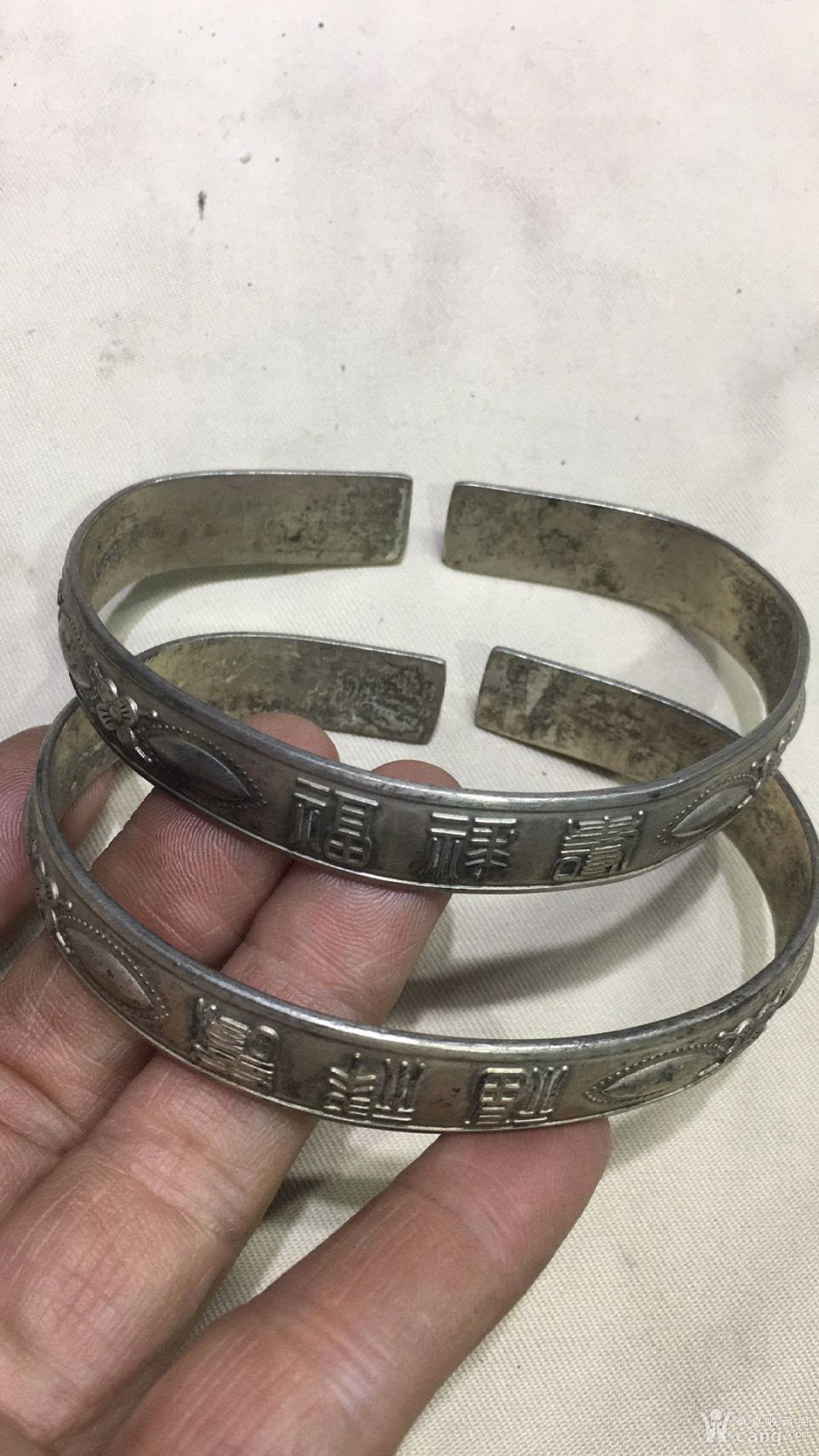 福寿纹银手镯一对
