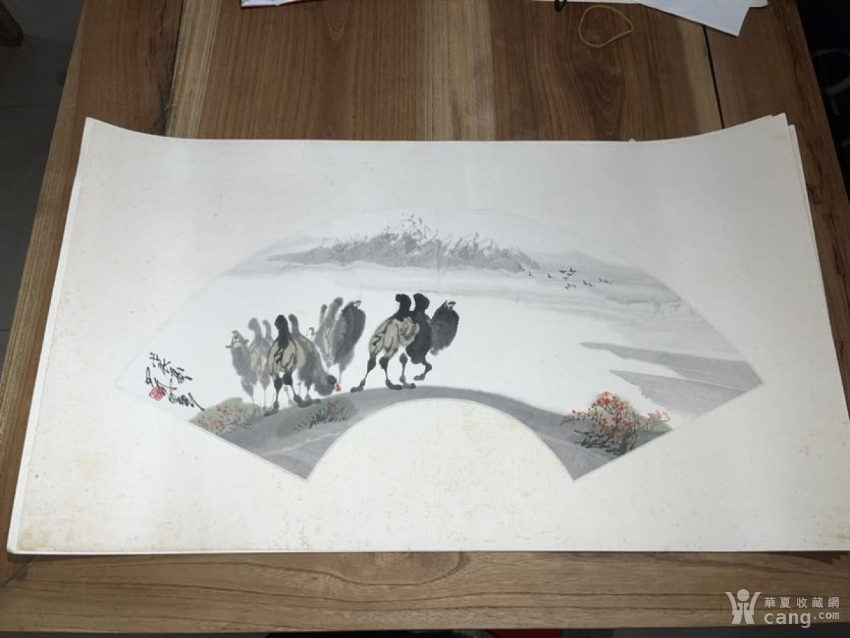 新疆人民政府文史馆馆员雷中峋骆驼扇片55*18.5 雷中峋[
