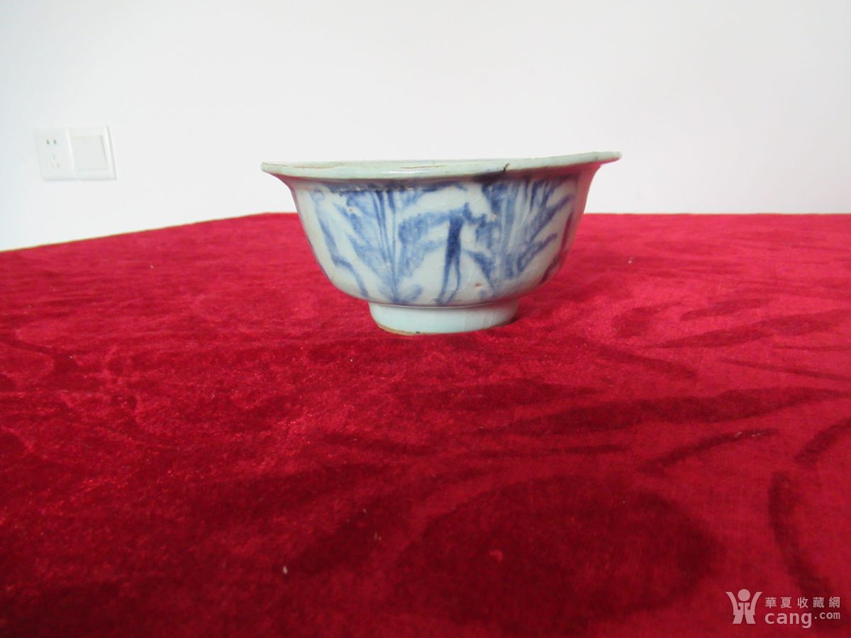 【瓷器收藏】明中期青花瓷白菜抽象图碗(以图为准)
