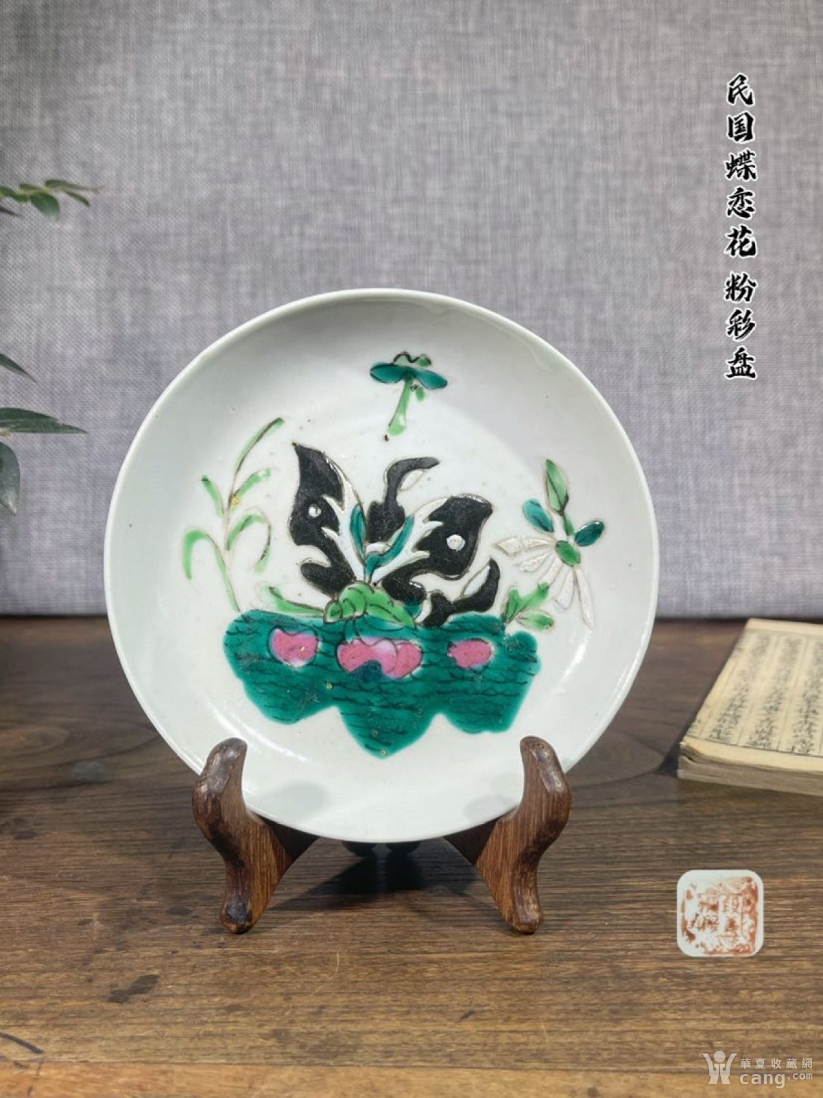 T0003 民国蝶恋花粉彩盘
