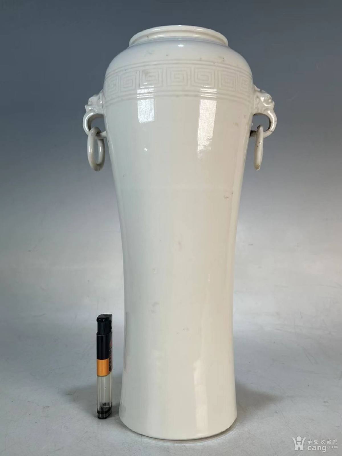 民国德化窑回字纹兽耳衔环梅瓶