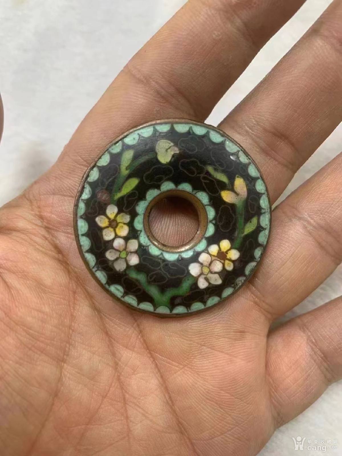 清代景泰蓝紫铜胎花卉平安扣,