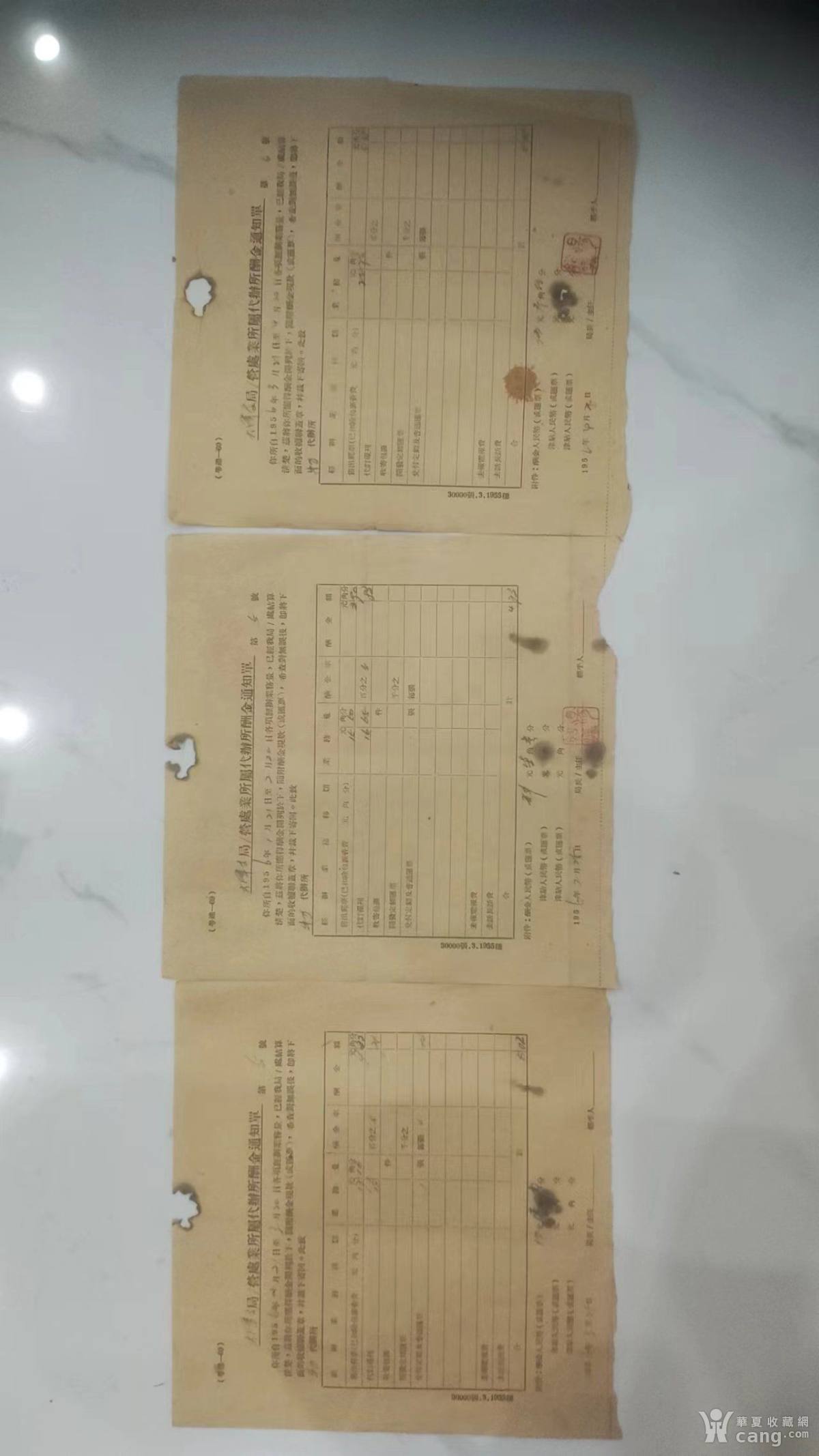 1956年新会县大泽支局牛力代办所酬金通知单三张一起走