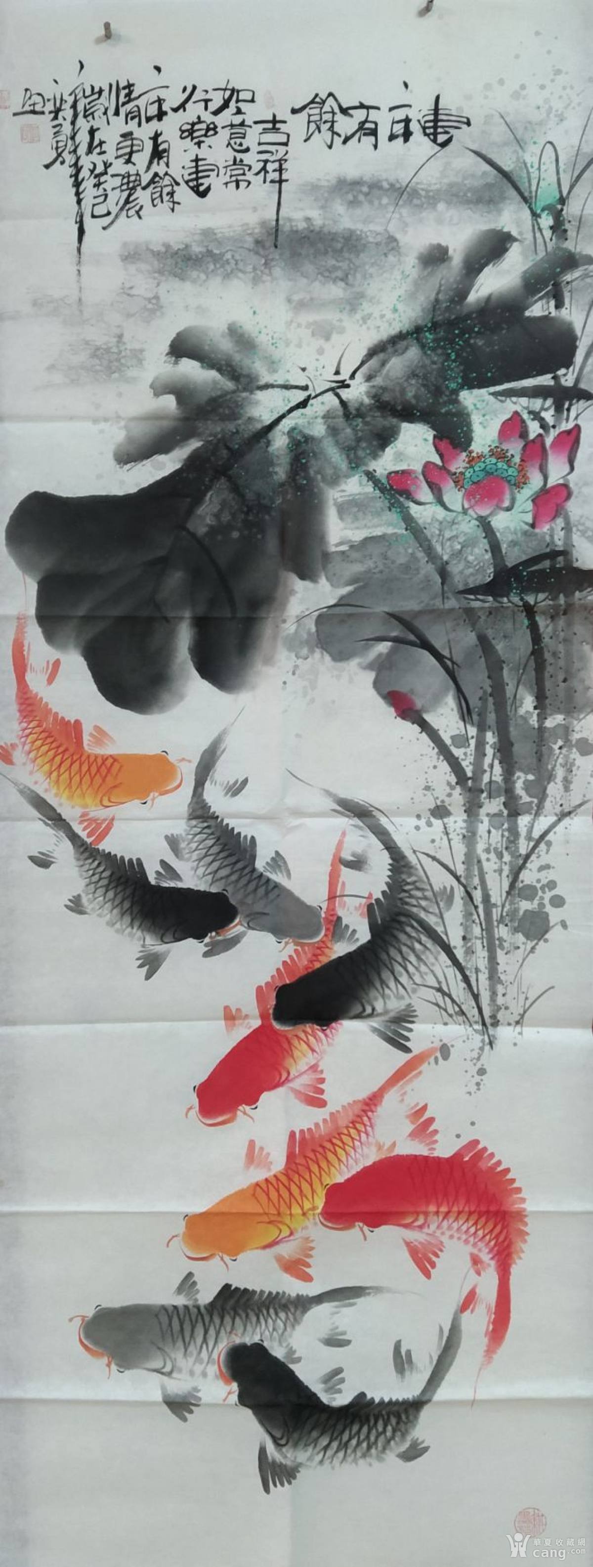 *何亦勇*连年有余手绘真迹 180/70cm纸本未装裱