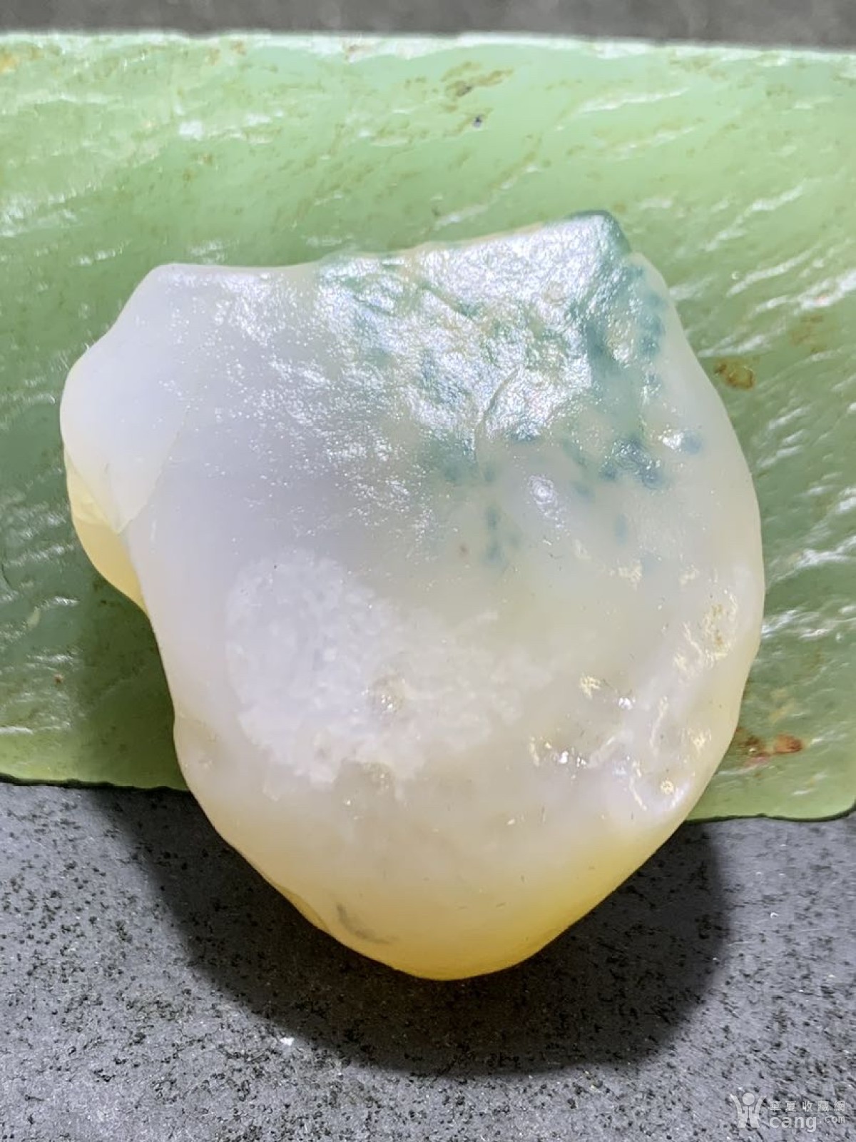 放福利!精美天然戈壁绿草花沁白玛瑙原石一颗,