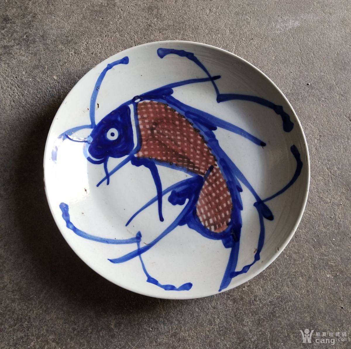 晚清青花釉里红大鱼盘