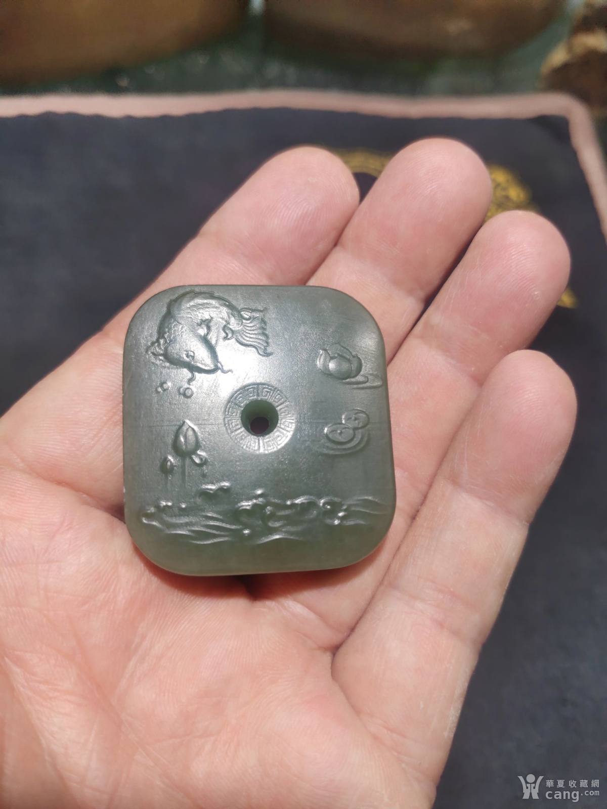 新疆和田玉沙枣青(荷塘月色)平安扣