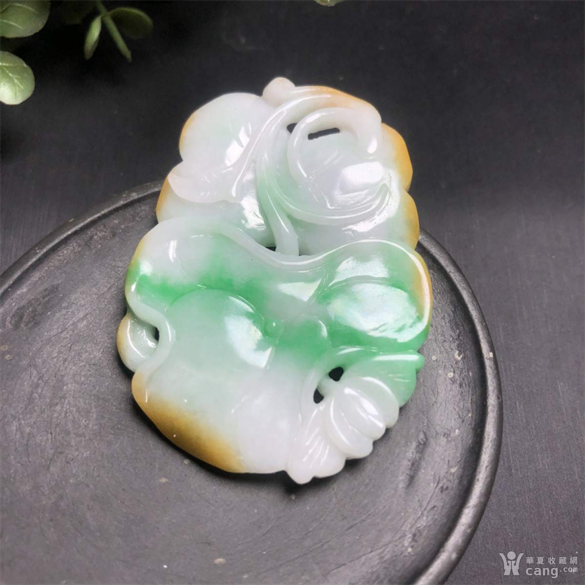 F534创汇期糯冰种黄加绿翡翠荷叶花牌