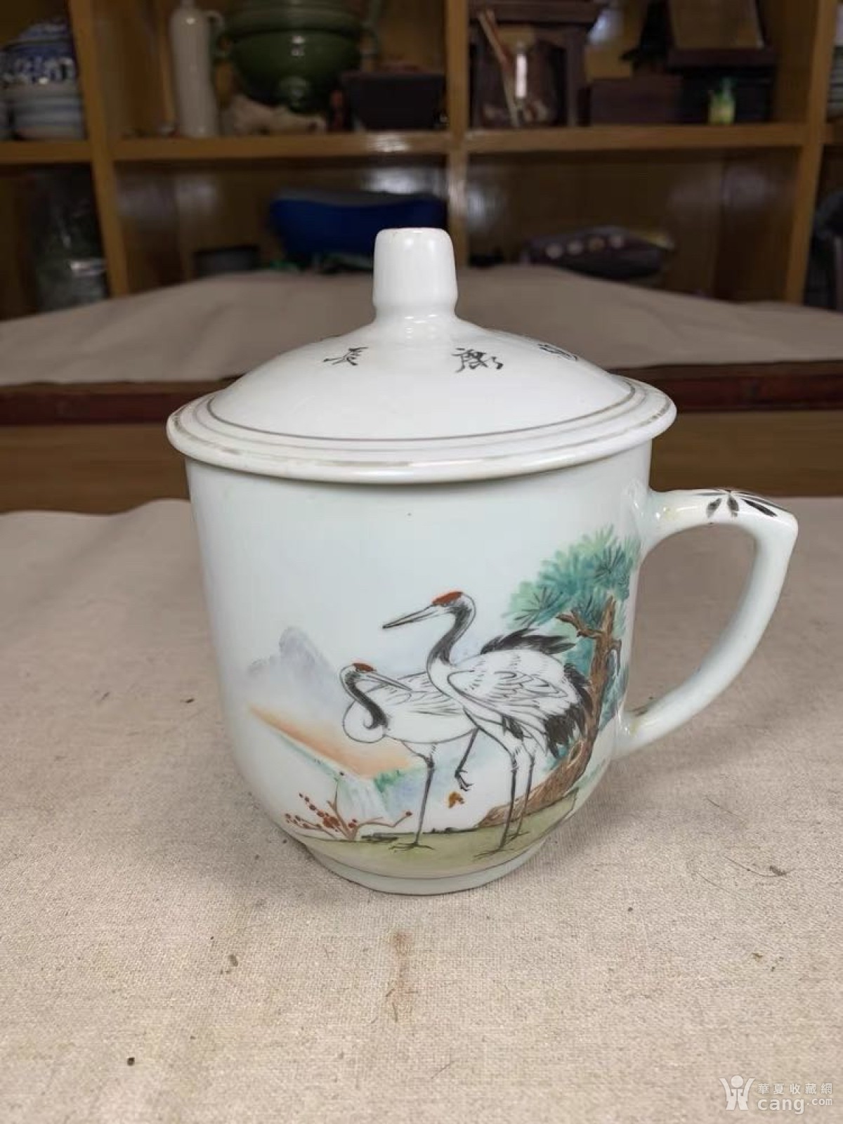 古董古玩收藏杂项近代仙鹤茶杯杯子瓷器白瓷景德镇
