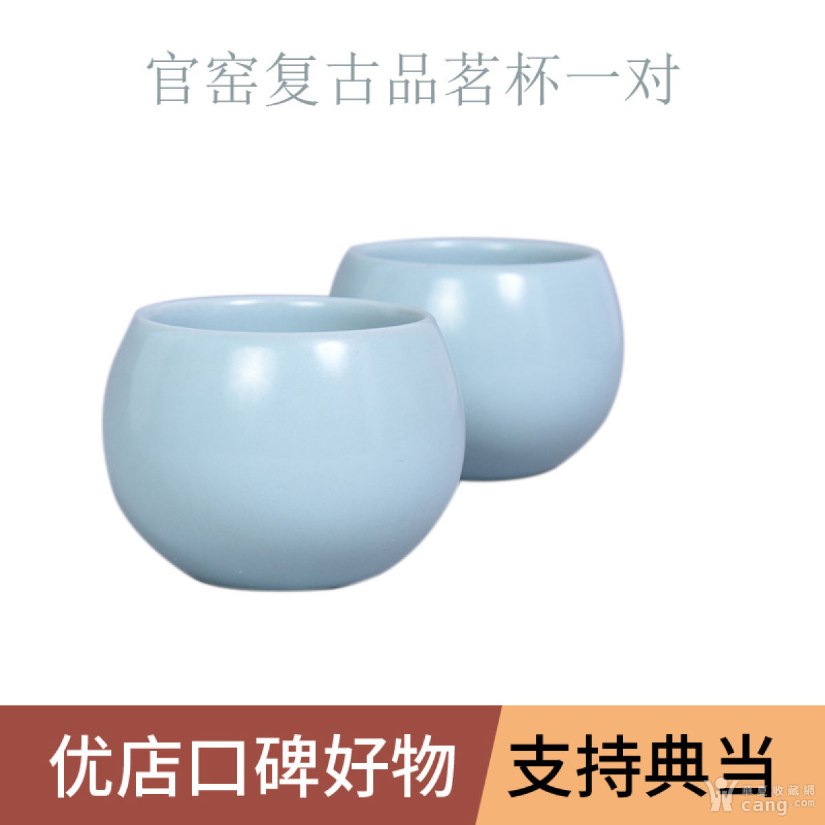 【保真能典当】当代 官窑复古品茗杯一对