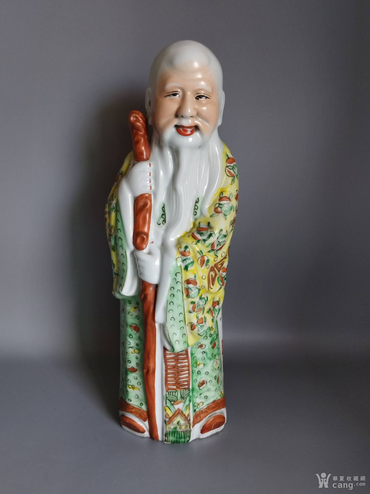 晚清民国名家茂记生粉彩寿星人物瓷像 全品