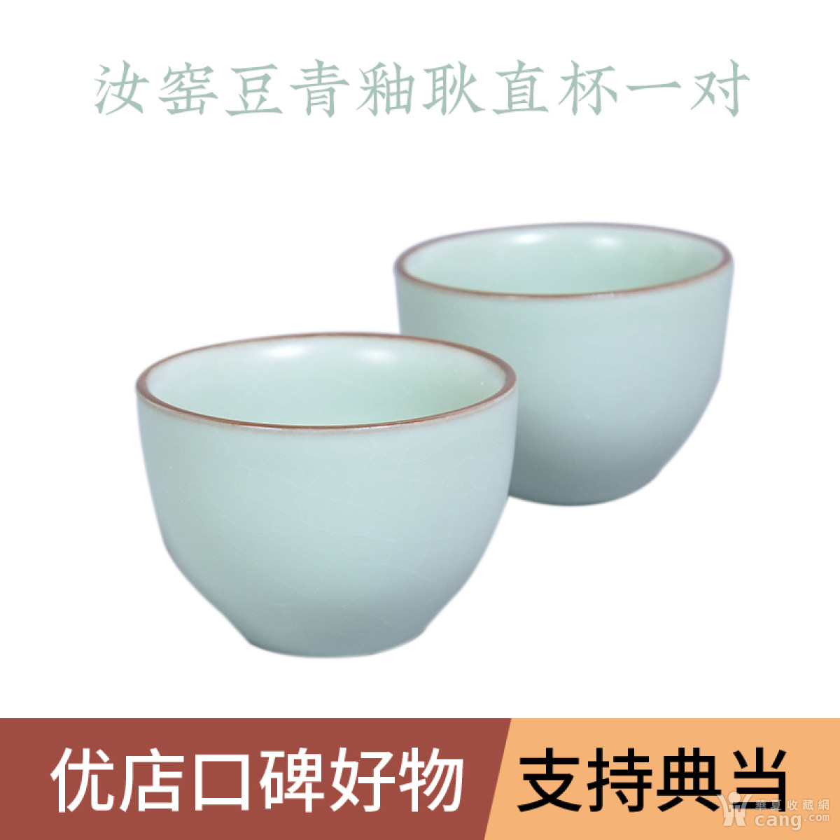【保真能典当】当代 汝窑豆青釉耿直杯一对