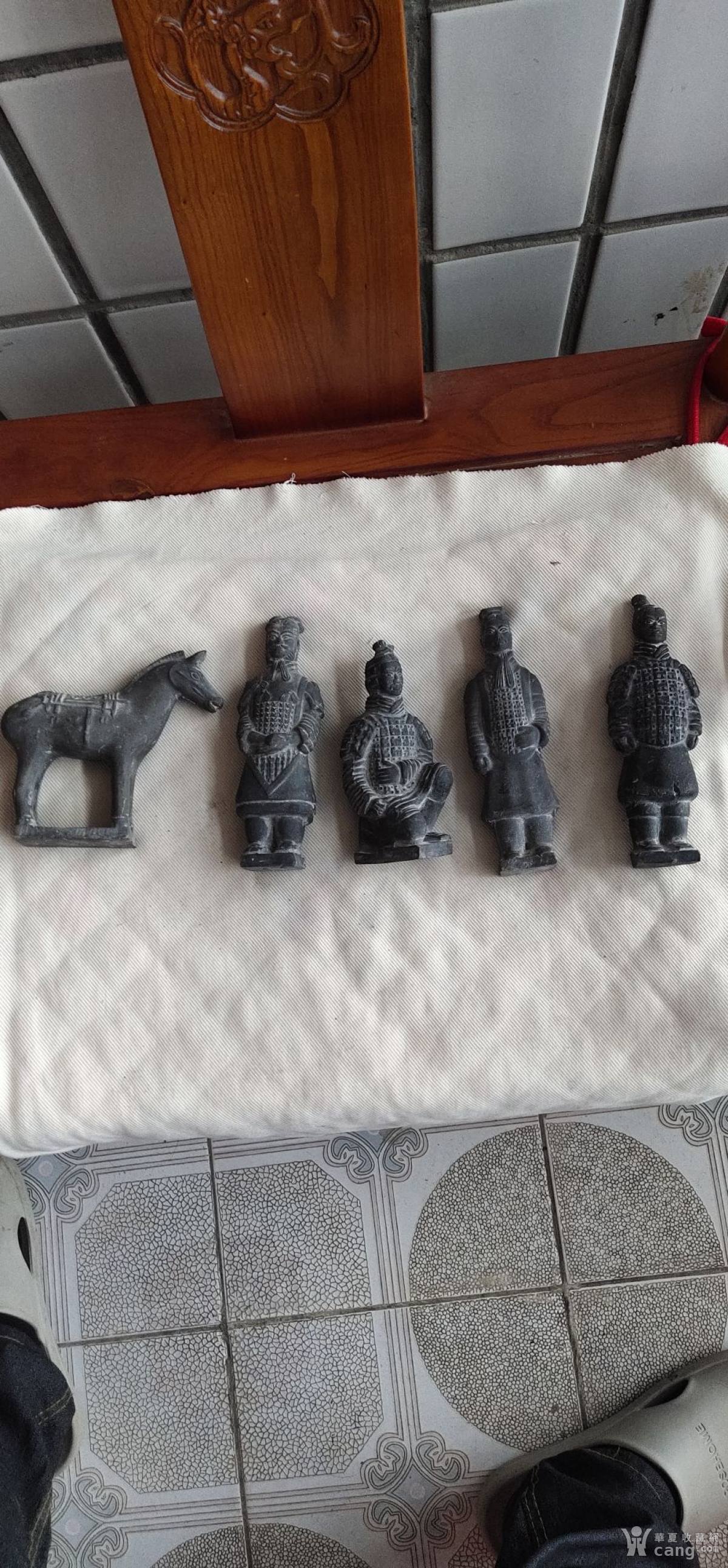 80年代兵马俑陶甬纪念品摆件一套,一个有两处小窑裂,马尾坏
