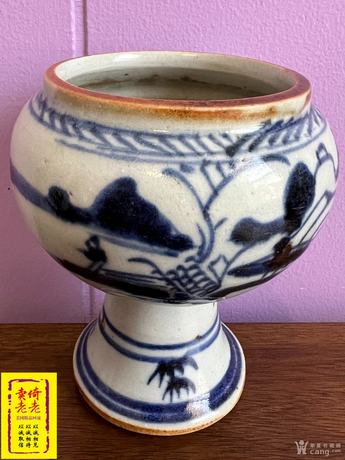 ★【罕见】清中期乾隆青花春江远景通景纹豆 ★311
