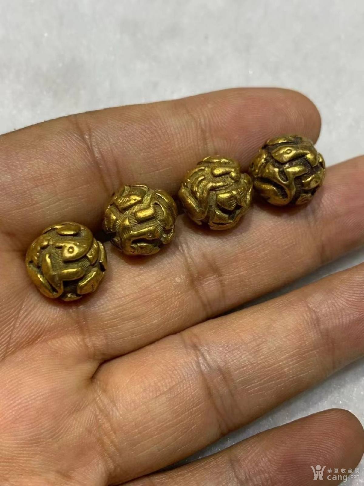 清代包金松鼠仙鹤松树扣子4颗,